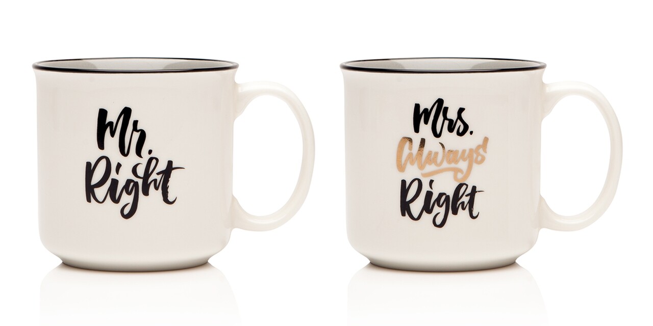 Set 2 cani din portelan, Sabichi, Mr. Right and Mrs. Right, 350 ml
