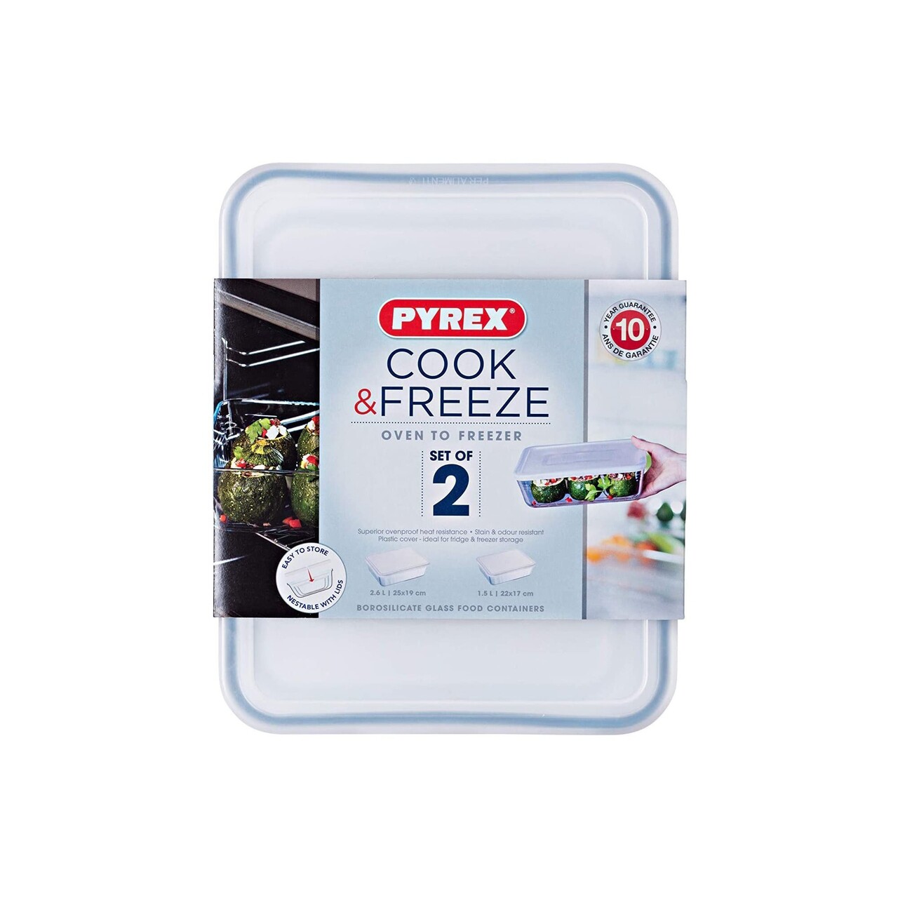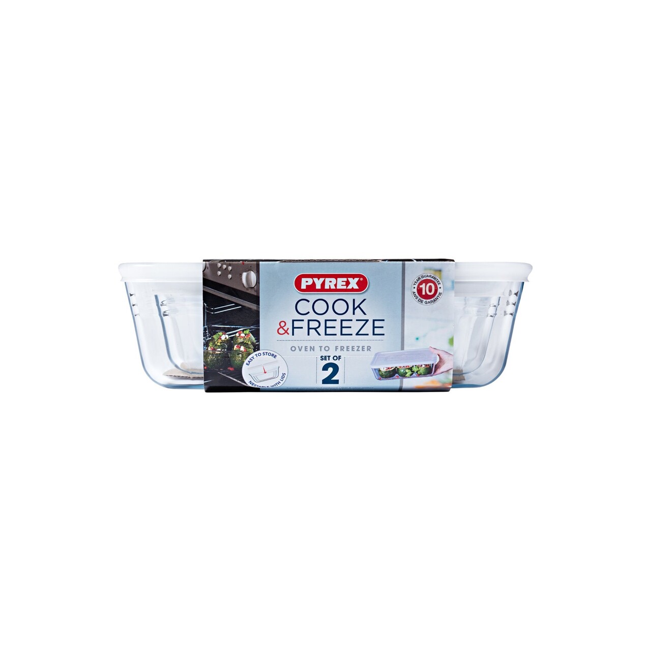 Pentru a va pregati mese suficiente pentru o saptamana sau pentru a congela alimentele ramase, Pyrex® a conceput COOK & FREEZE, O gama de vase din sticla borosilicata rezistenta la soc termic, Care va permite sa adaugati vasele din congelator direct in cuptor in conditii de siguranta. COOK & FREEZEEste conceputa pentru a rezista la un Soc termic de pana la 240°C.Fara manere si cu linii drepte, Designul colectiei permite stocarea optima in congelator.