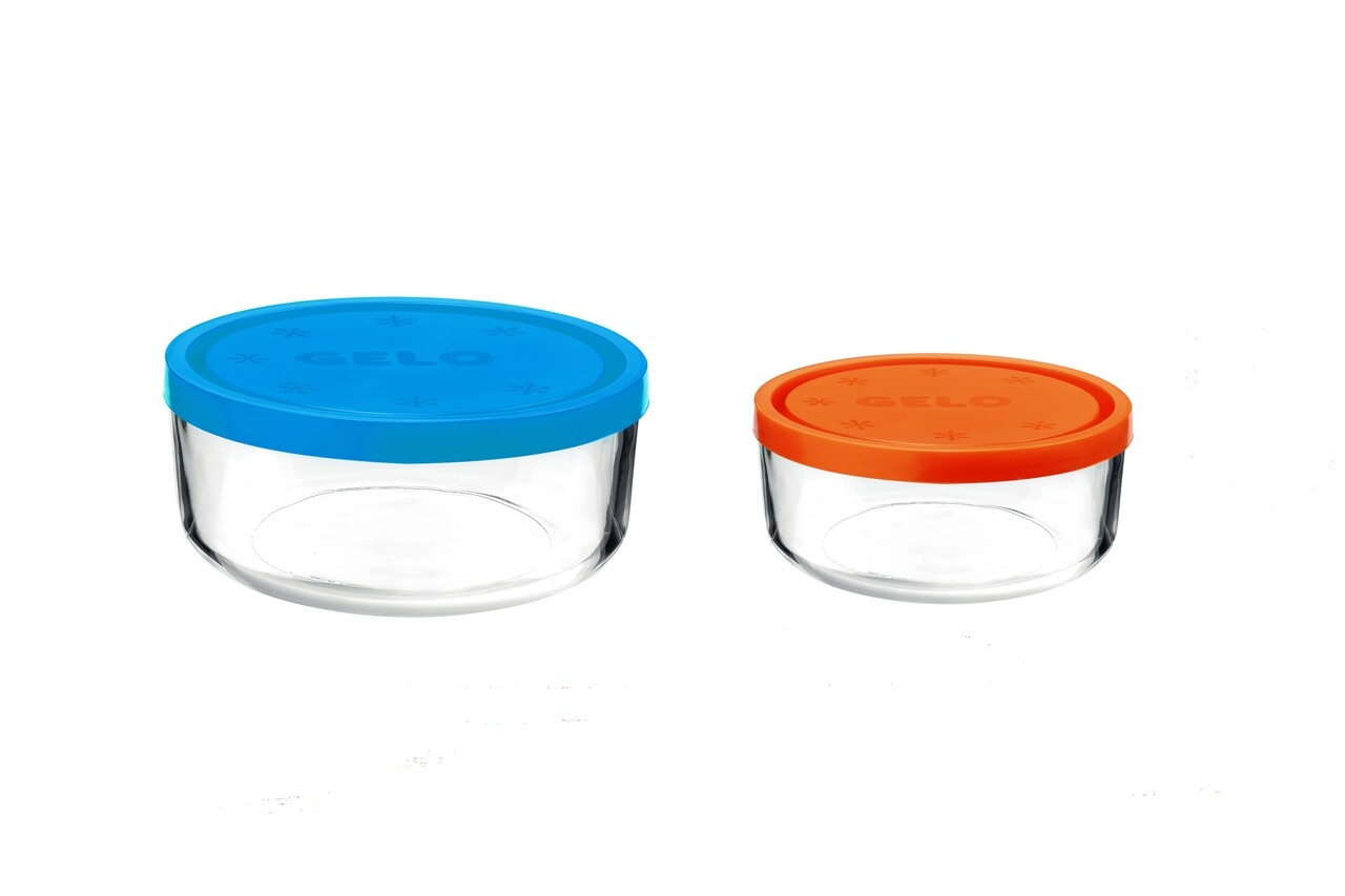 Set 2 caserole Frigoverre, Bormioli, 1250 ml/740 ml, sticla, albastru/portocaliu