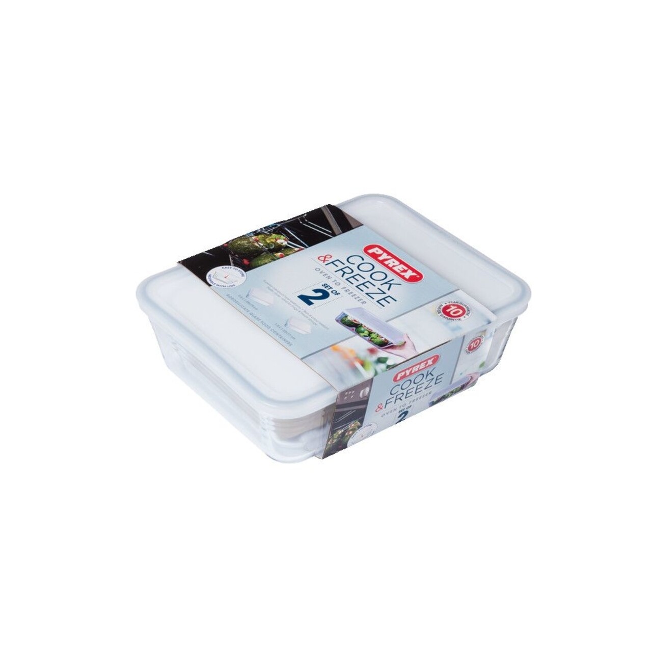 Set 2 caserole rectangulare cu capac, Pyrex Cook & Freez, 1.5 L/2.6 L, sticla temperata