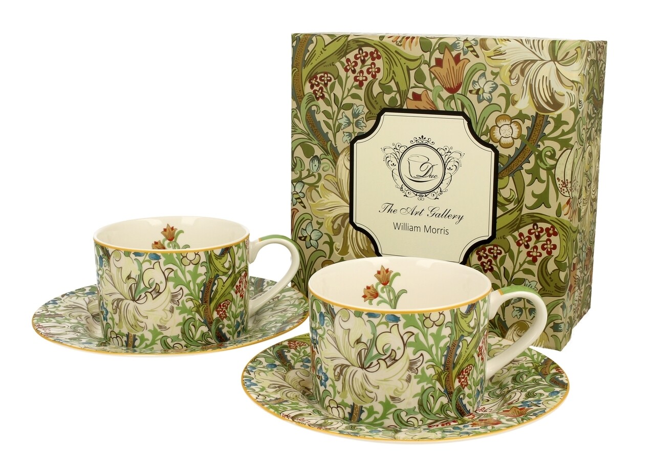 Set 2 cesti cu farfurie Golden Lily, Duo, 240 ml, portelan, multicolor