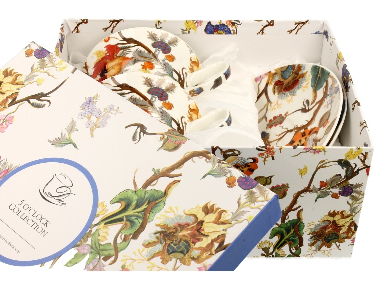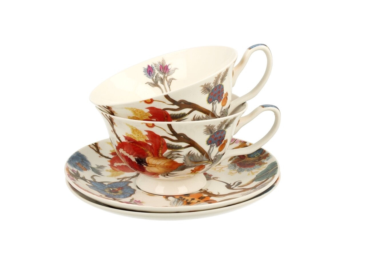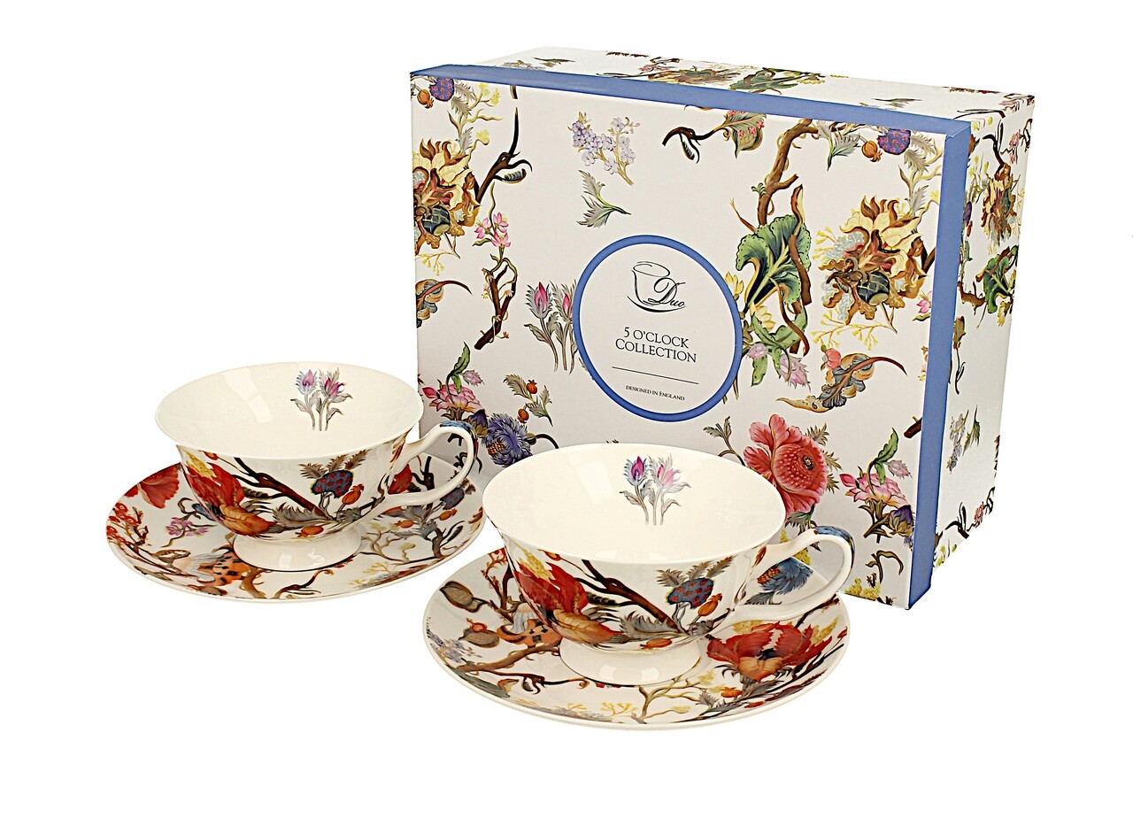 Setul compus din doua cesti si farfuriute are un design deosebit, ce va va cuceri imediat. Fie ca sunt folosite pentru cafeaua de dimineata sau pentru ceaiul de dupa-amiaza, cescutele sunt perfecte pentru persoanele care pun accent pe detalii.