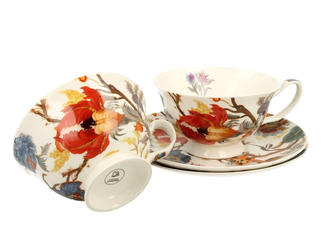 Set 2 cesti cu farfurie Natalie, Duo, 200 ml, portelan, multicolor