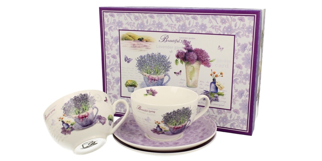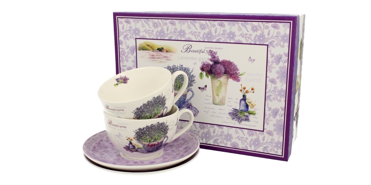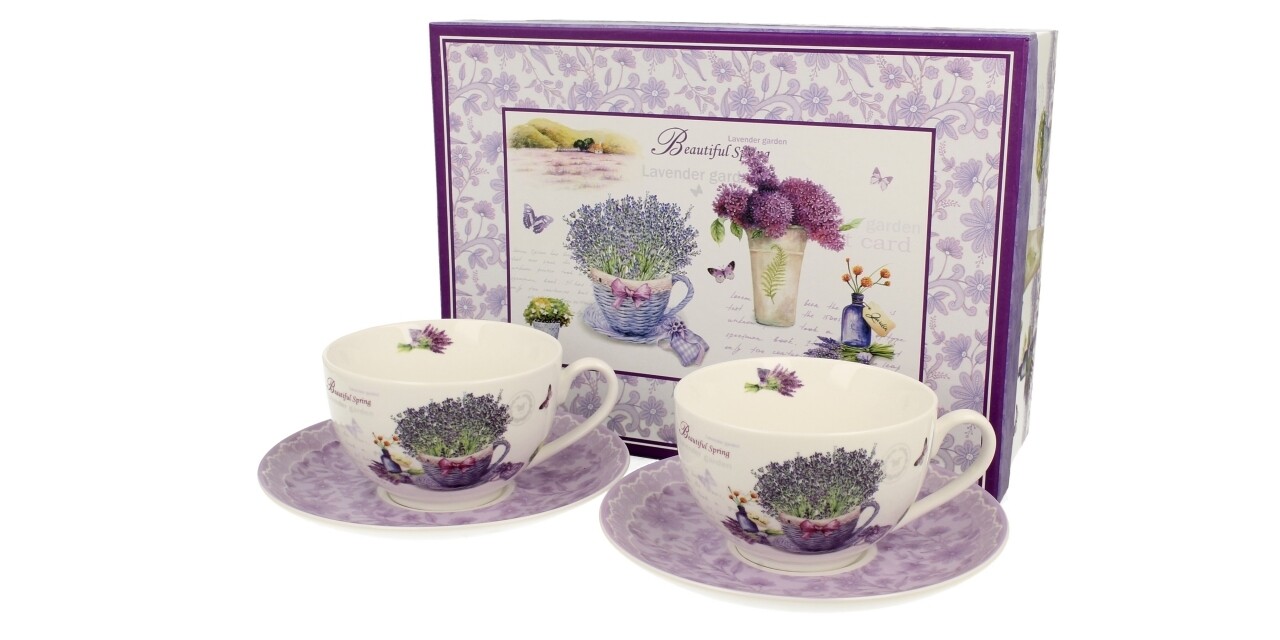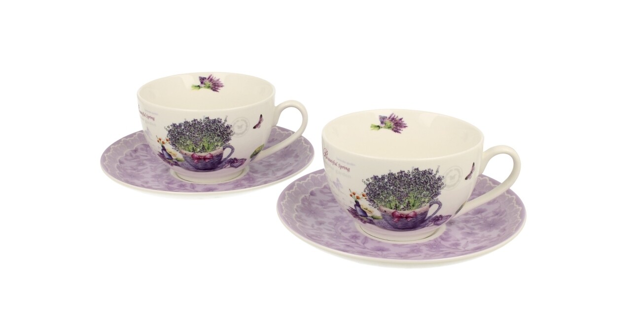 Set 2 cesti cu farfurie Passion, Duo, 250 ml, portelan, mov