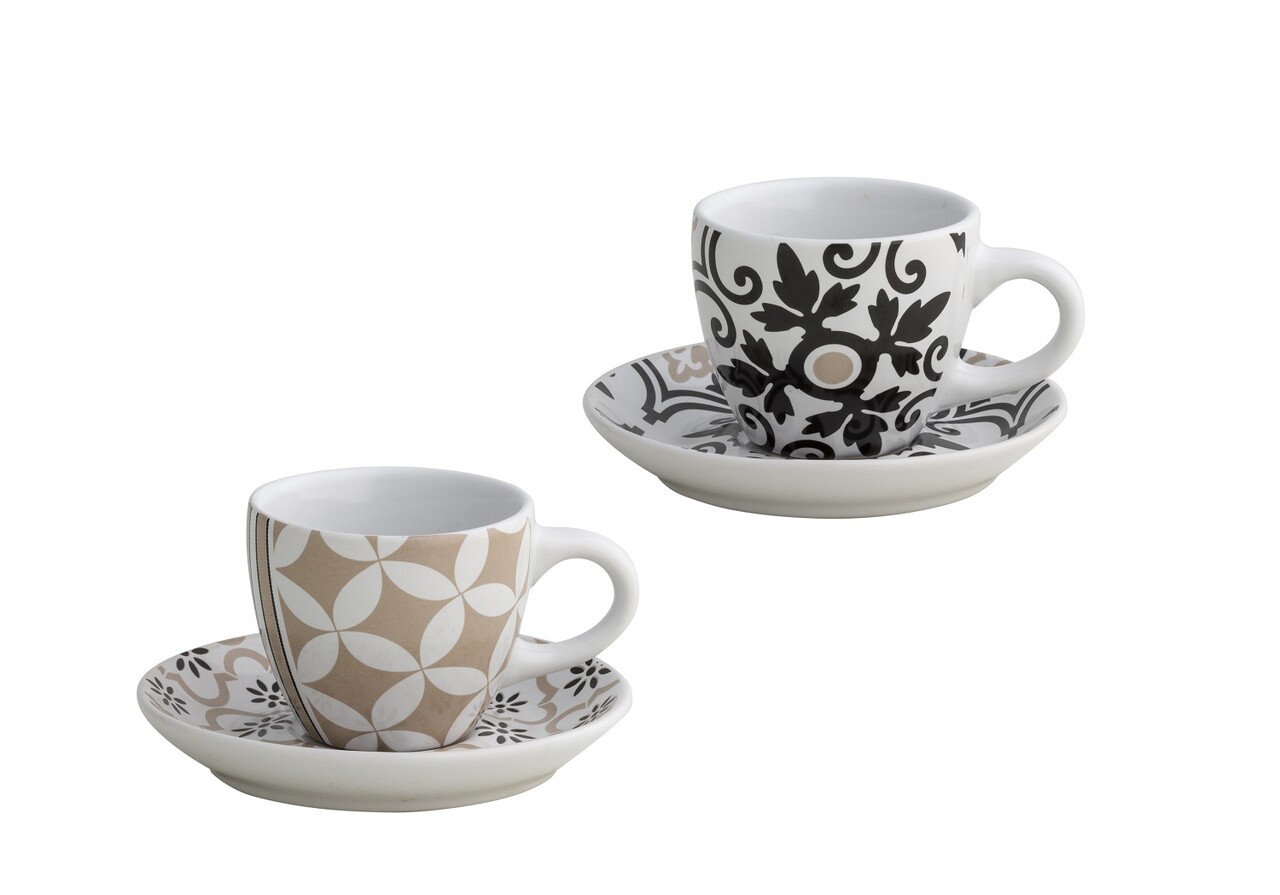 Set 2 cesti cu farfurie pentru cafea, Alhambra, Brandani, 10.5x6 cm, portelan