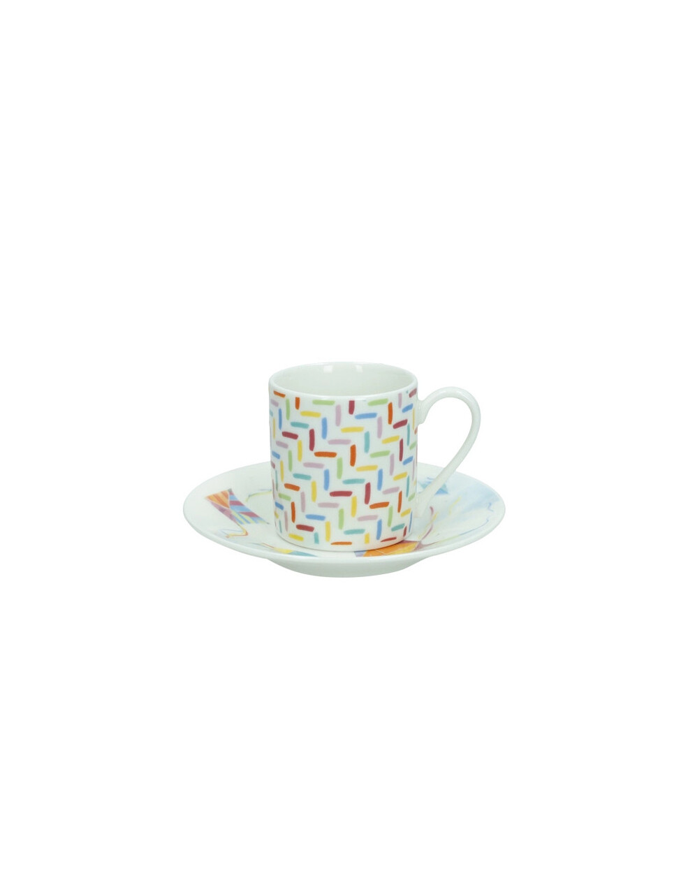 Setul include 2 cesti pentru cafea si 2 farfurii; dimensiuni: ø11x6h cm.