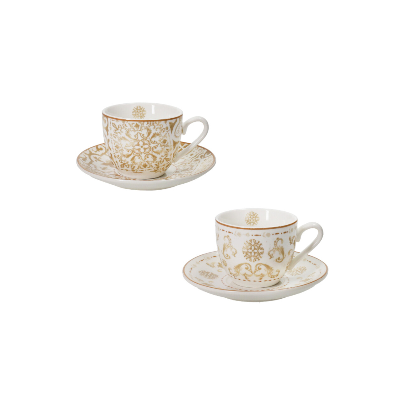 Set cescute de cafea cu farfurioara - Perfect atat pentru ocazii speciale, cat si pentru momentele obisnuite ale zilei. Designul rafinat in auriu stralucitor se integreaza usor in orice aranjament, aducand o nota de eleganta discreta.