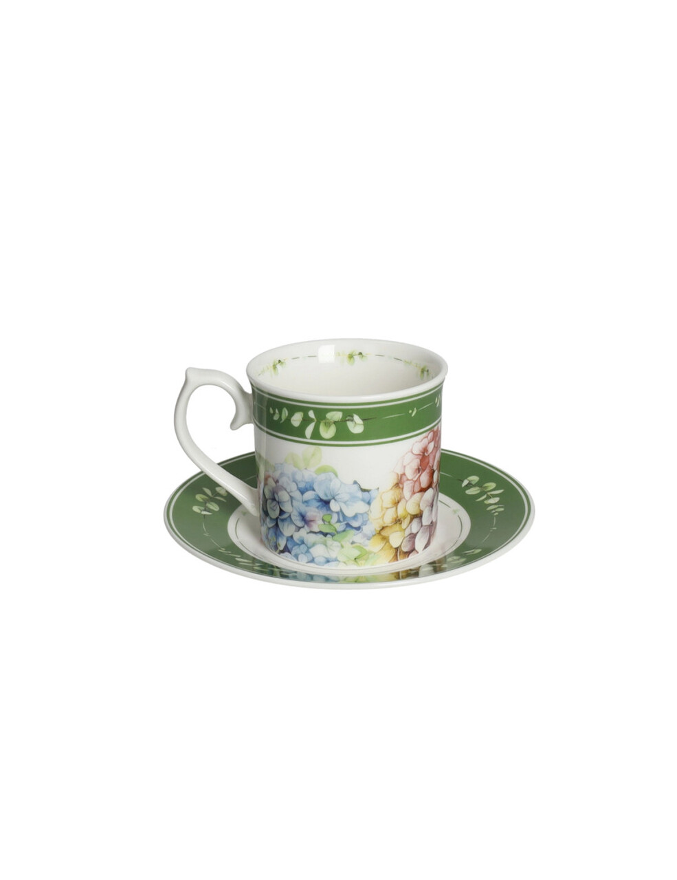Set 2 cesti cu farfurie pentru cafea, Flora, Brandani, D8x8.5 cm, portelan New Bone China
