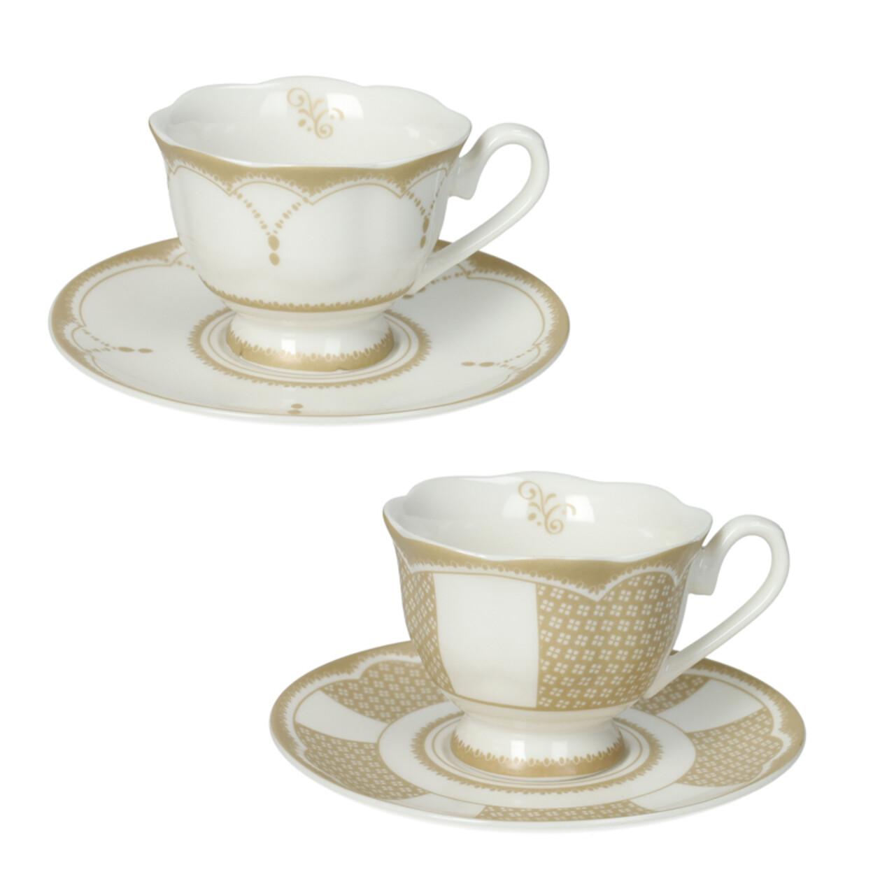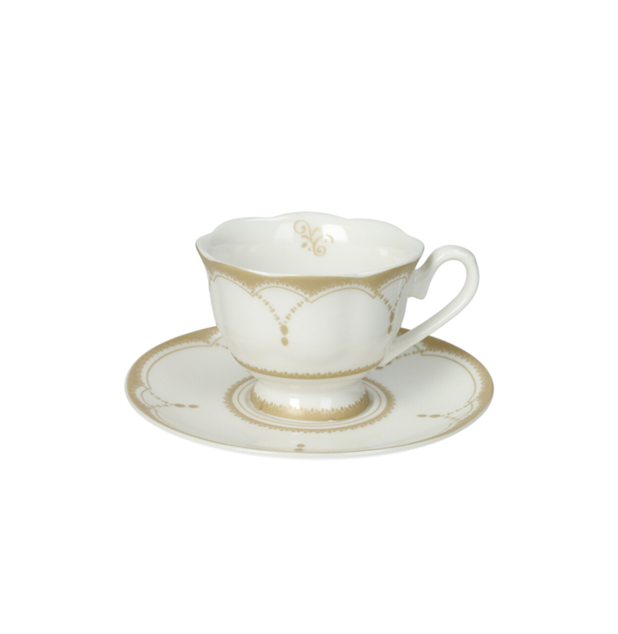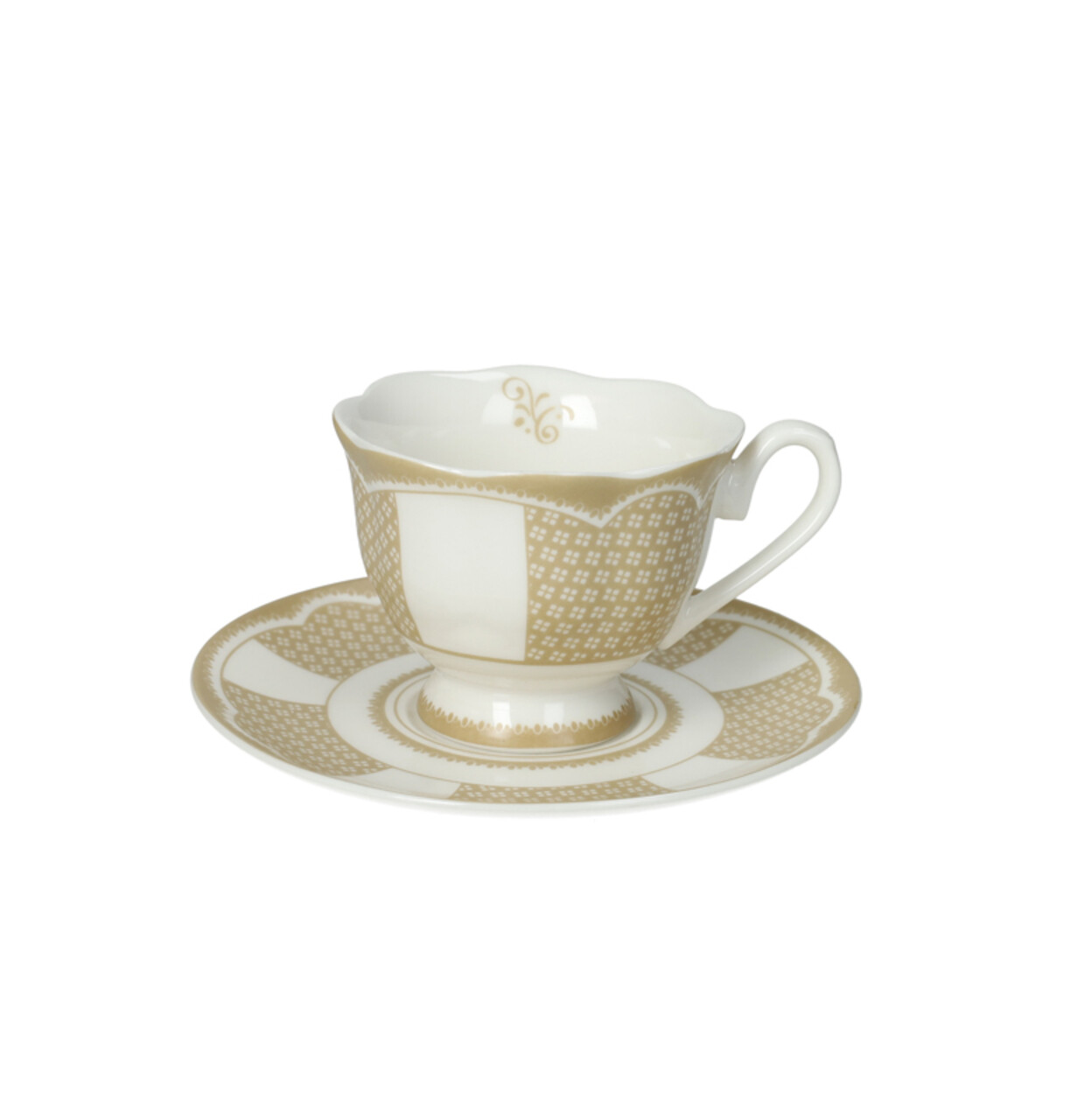 Set 2 cesti cu farfurie pentru cafea, Golden Eye v2, Brandani, D11.5x6 cm, portelan New Bone China