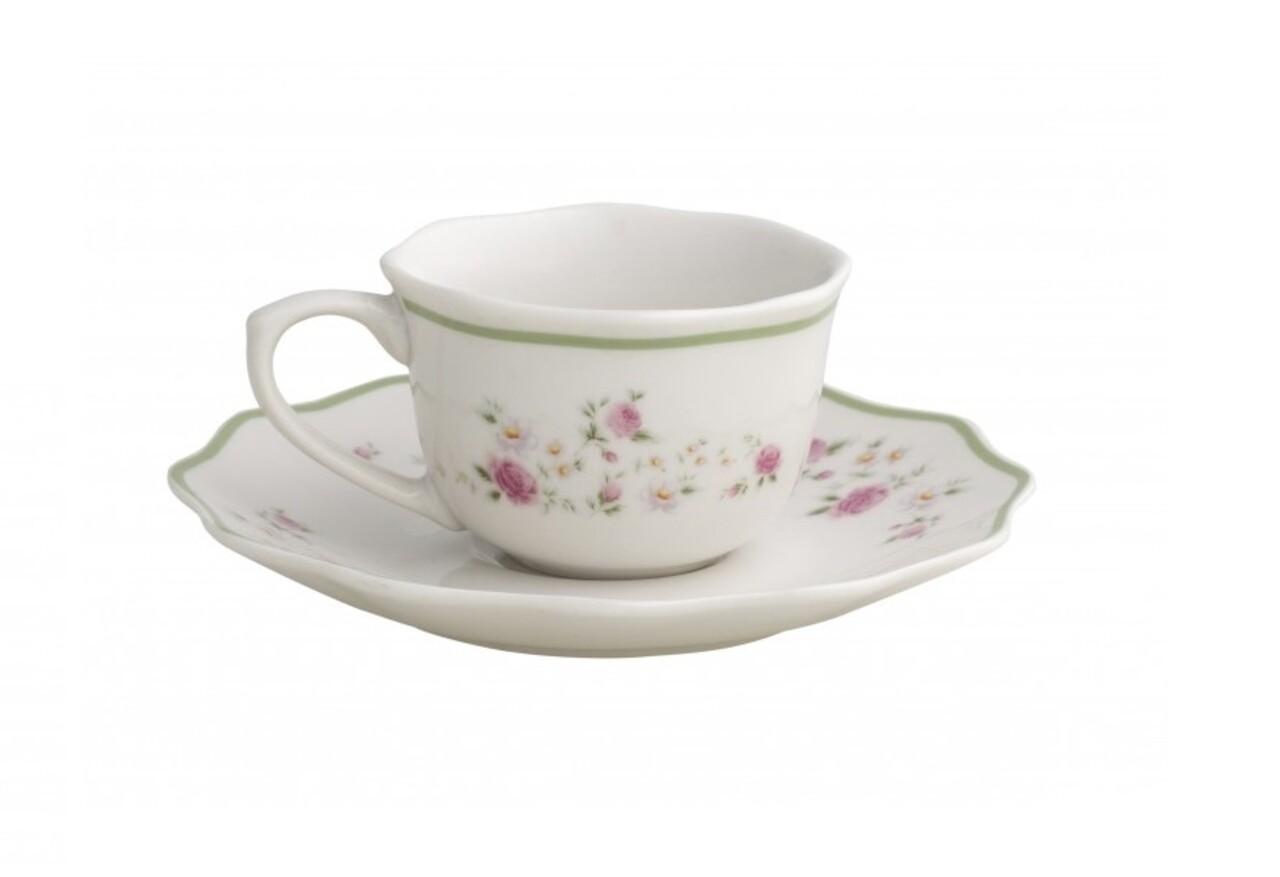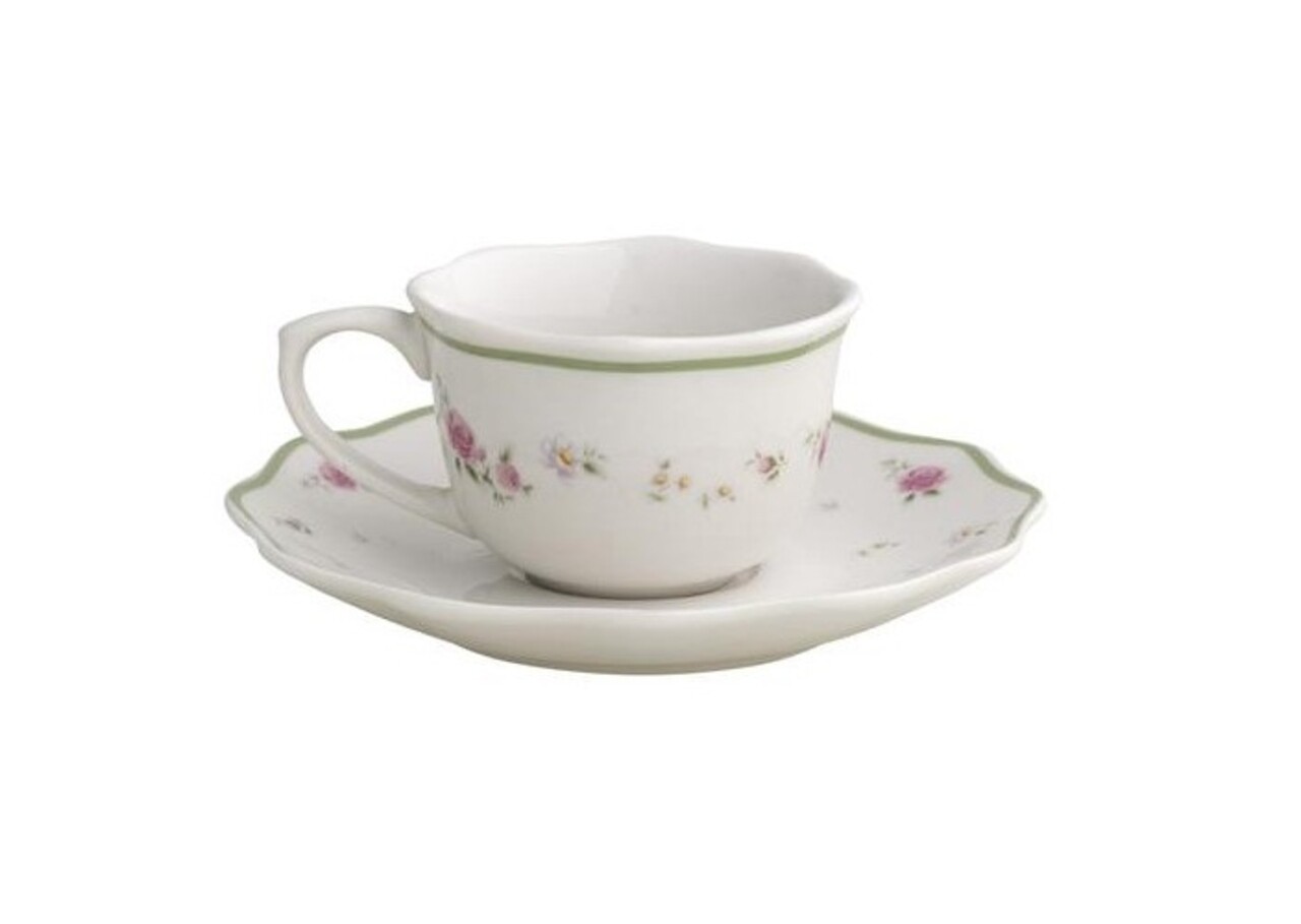 Set 2 cesti cu farfurie pentru cafea, Nonna Rosa v1, Brandani, 14x6.5 cm, portelan