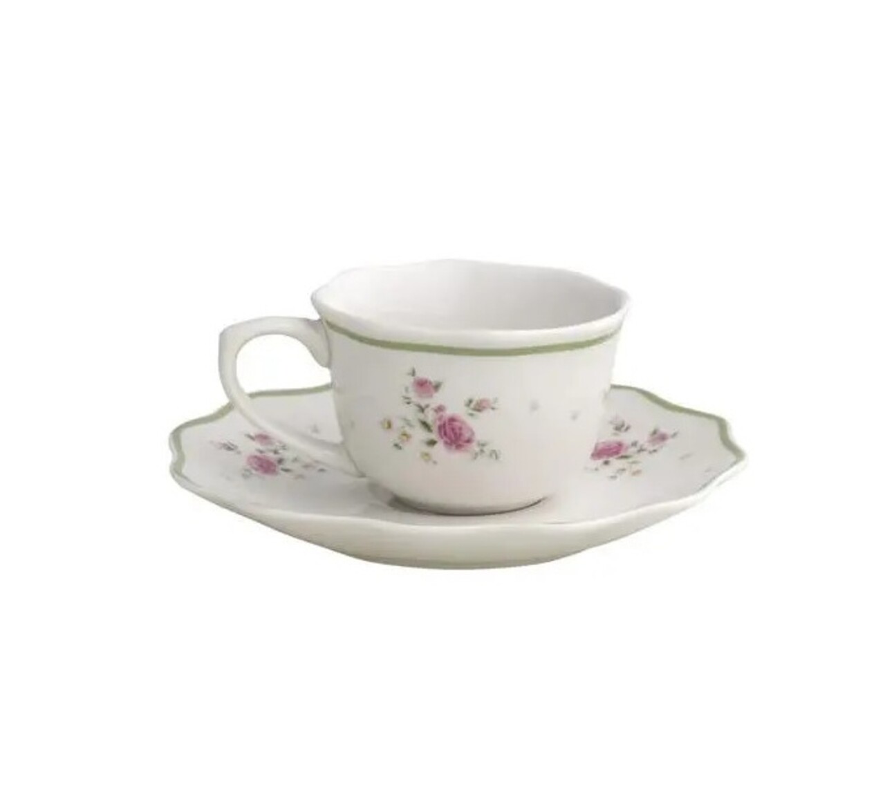 Set 2 cesti cu farfurie pentru cafea, Nonna Rosa v2, Brandani, 14x6.5 cm, portelan