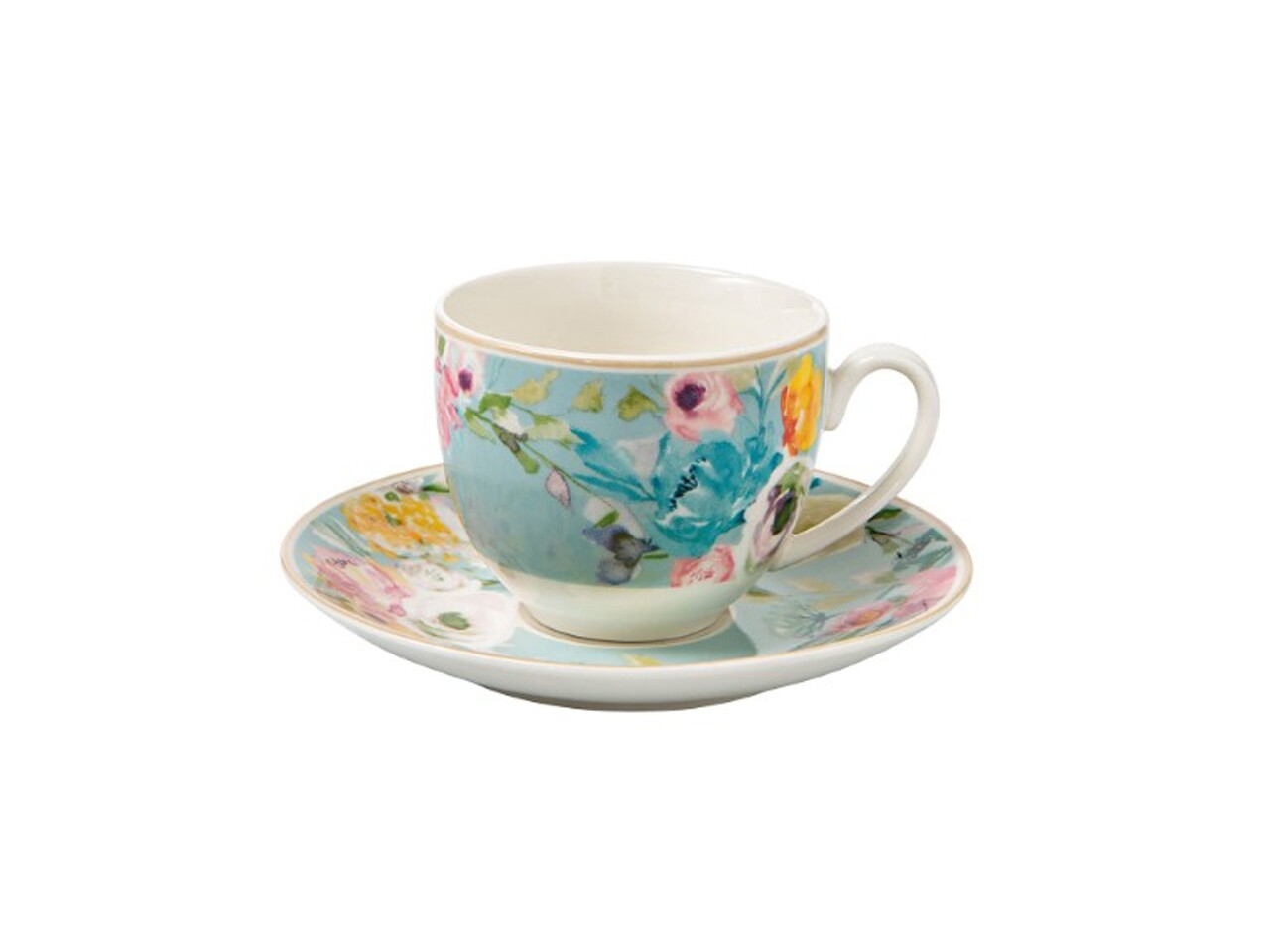 Set 2 cesti cu farfurie pentru cafea, Paradise Blue, Brandani, 90 ml, portelan