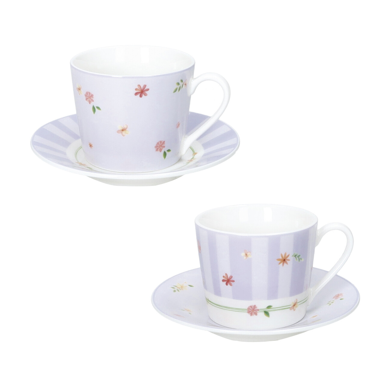 Set 2 cesti cu farfurie pentru cafea, Polline Lilac, Brandani, D11x7 cm, 50 ml, portelan New Bone China