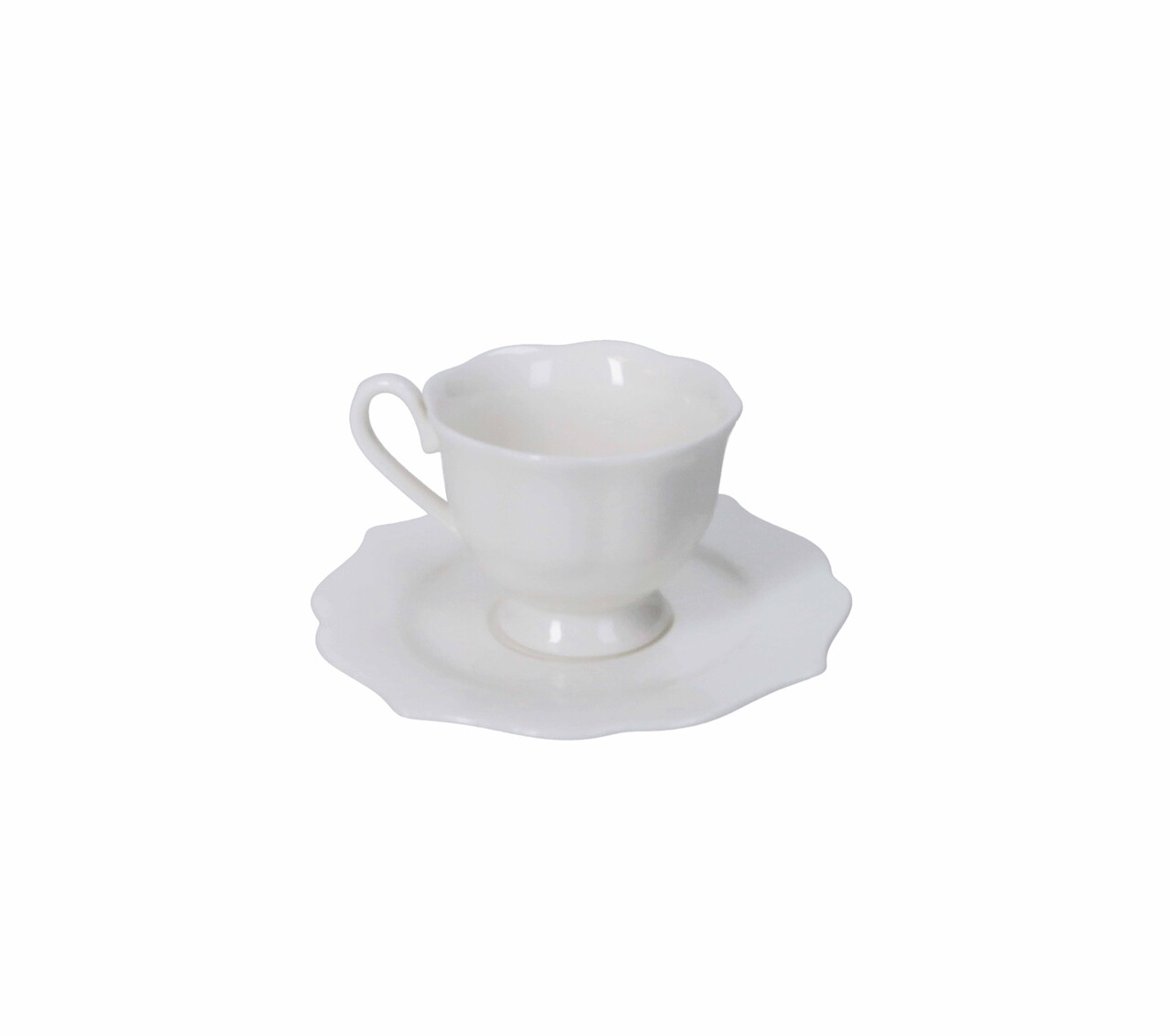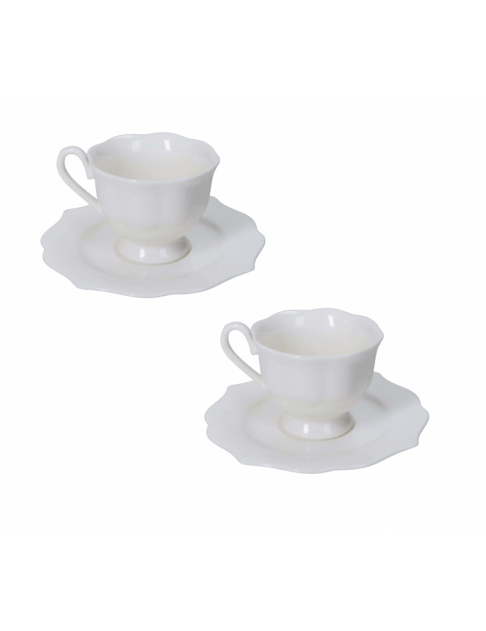 Set 2 cesti cu farfurie pentru cafea, Queen, Brandani, 12.5x5.5 cm, portelan New Bone China