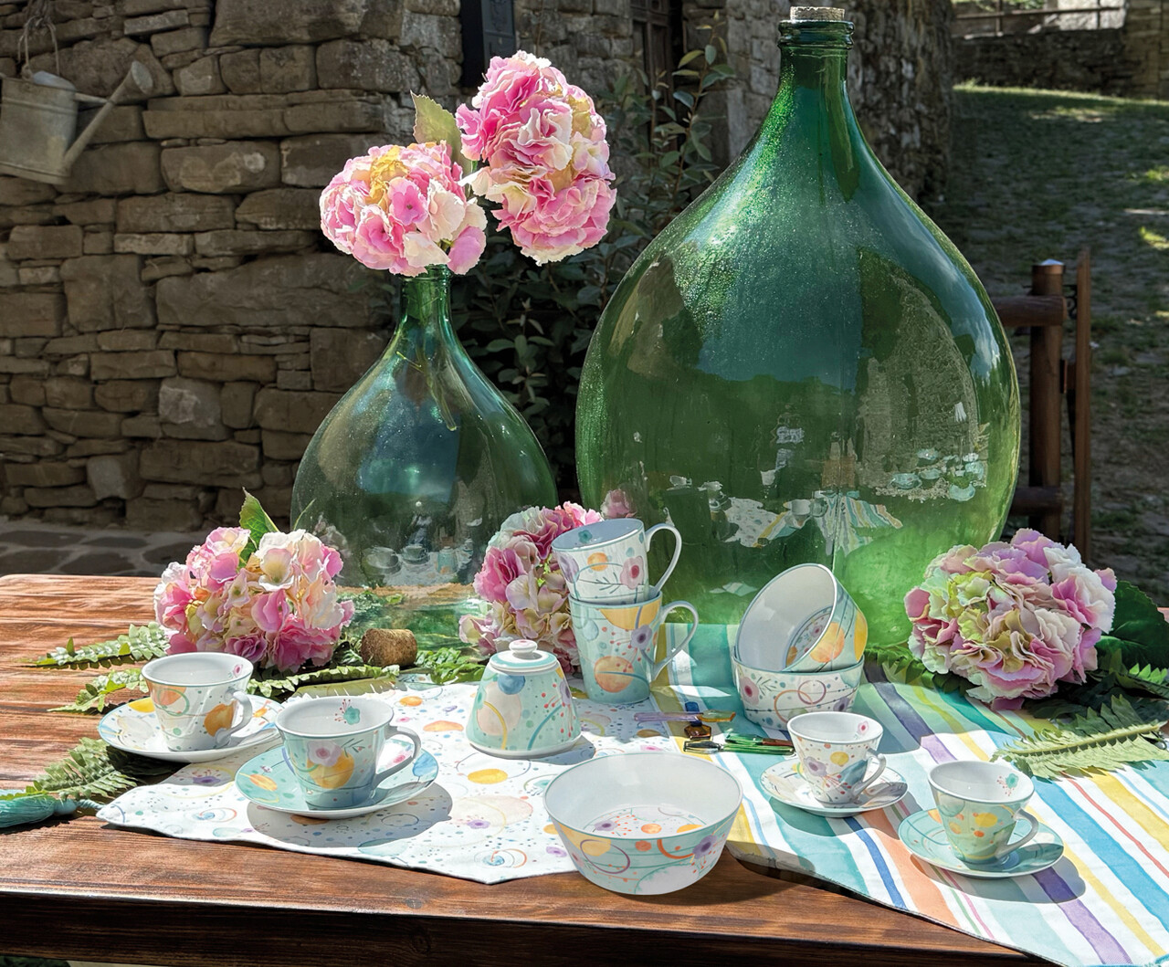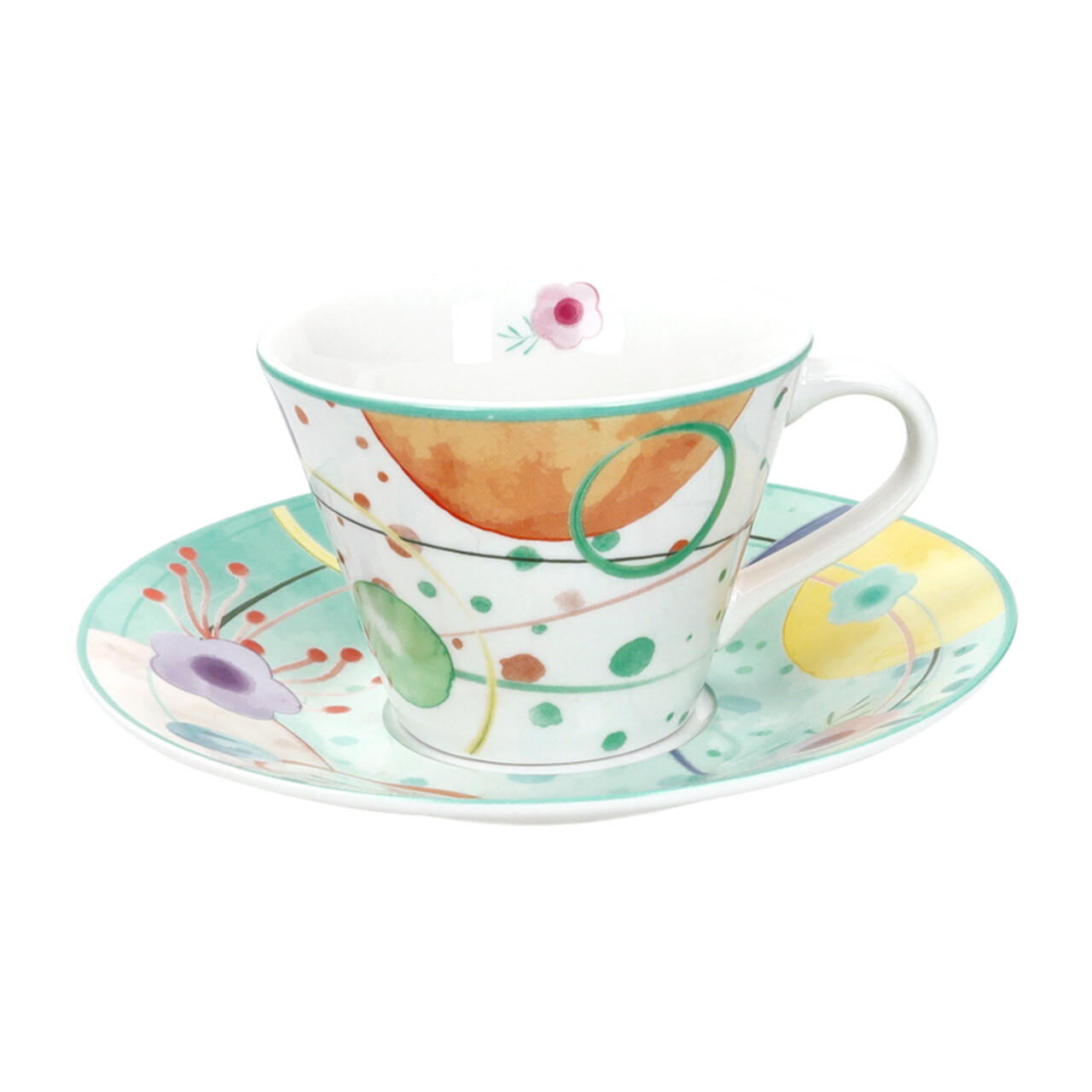 Colectia Bollicine aduce prospetime si culoare in fiecare detaliu. Setul de 2 cesti pentru ceai cu farfurioare impresioneaza prin decorurile pline de viata si designul armonios, ce imbina simetria cu accentele dinamice.