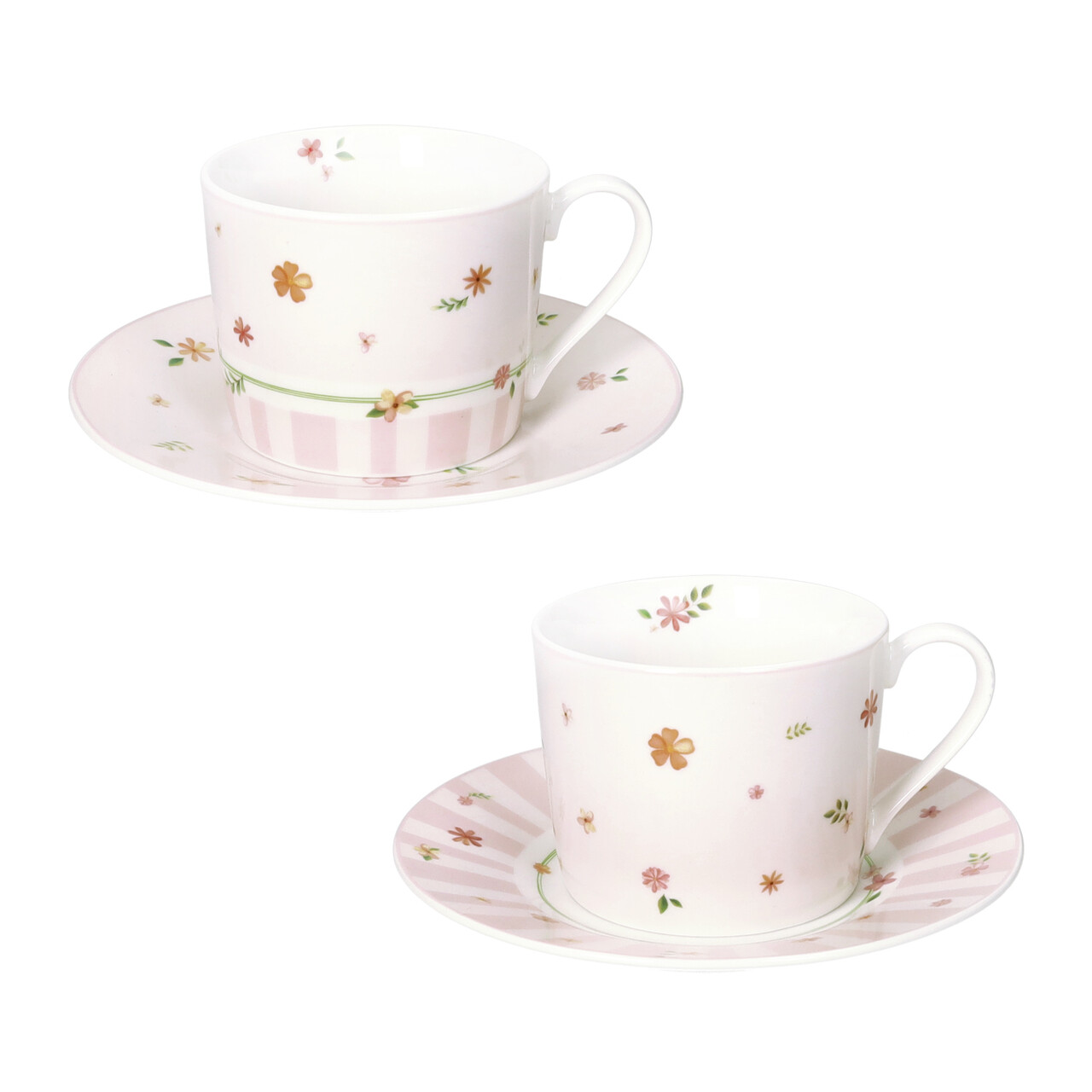 Set 2 cesti cu farfurie pentru ceai, Polline Pink, Brandani, D15x7 cm, 200 ml, portelan New Bone China