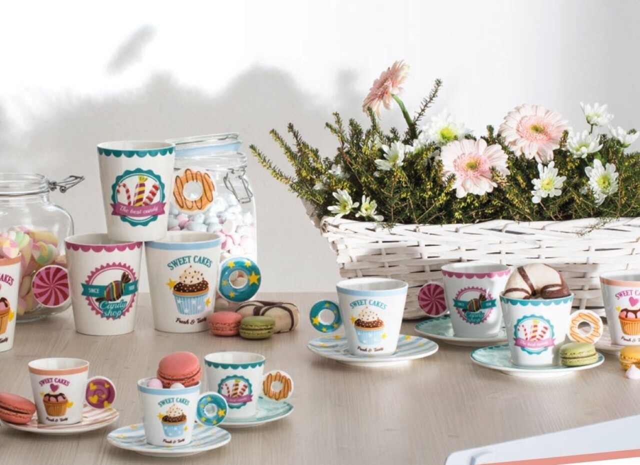Set 2 cesti cu farfurie pentru ceai Relax Candy, Tognana, portelan, 80 ml, multicolor
