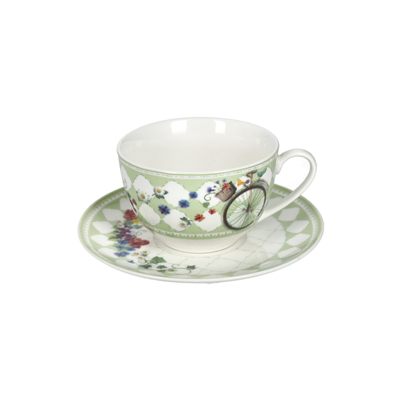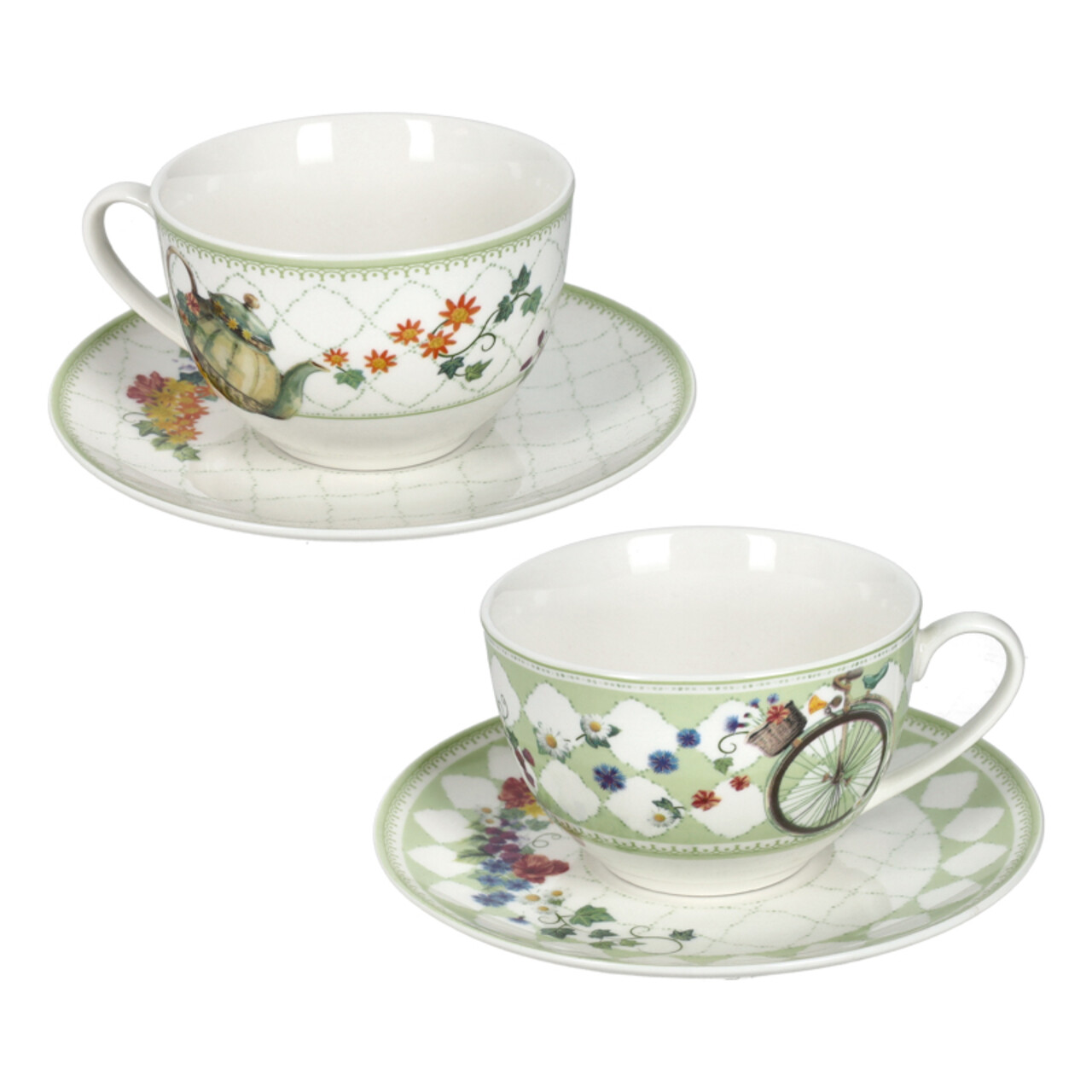 Set 2 cesti cu farfurie pentru ceai, Wonderland, Brandani, 15x7.5 cm, 200 ml, portelan New Bone China