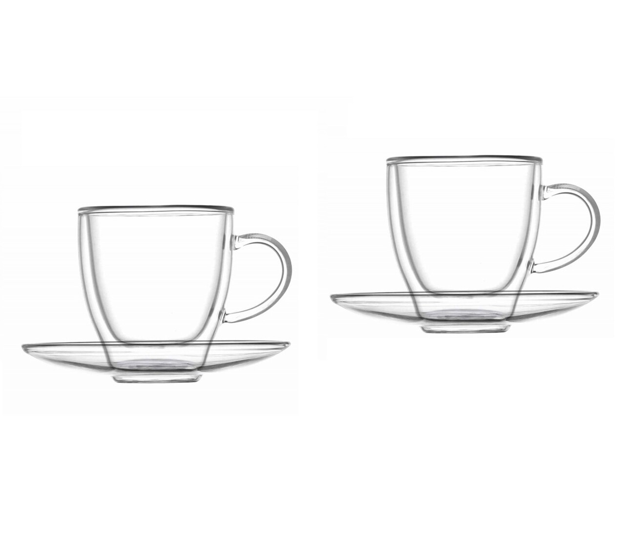 Set 2 cesti cu farfurie, perete dublu, Brandani, 100 ml, 6x7 cm, sticla