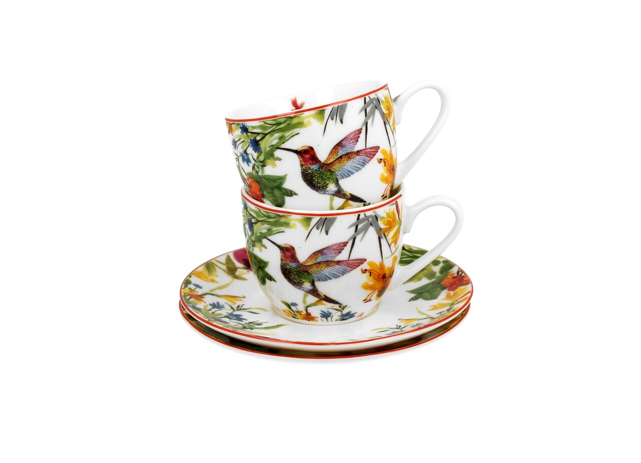 Setul este compus din 2 cesti, fiecare avand capacitatea de 90 ml si 2 farfurii.