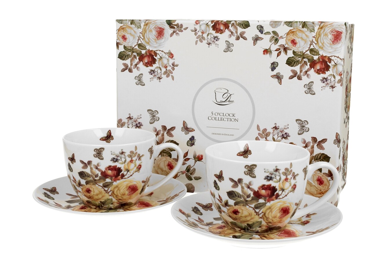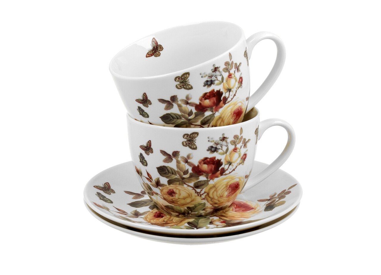 Set 2 cesti cu farfurioara, DUO, Zahra, 280 ml, portelan, multicolor