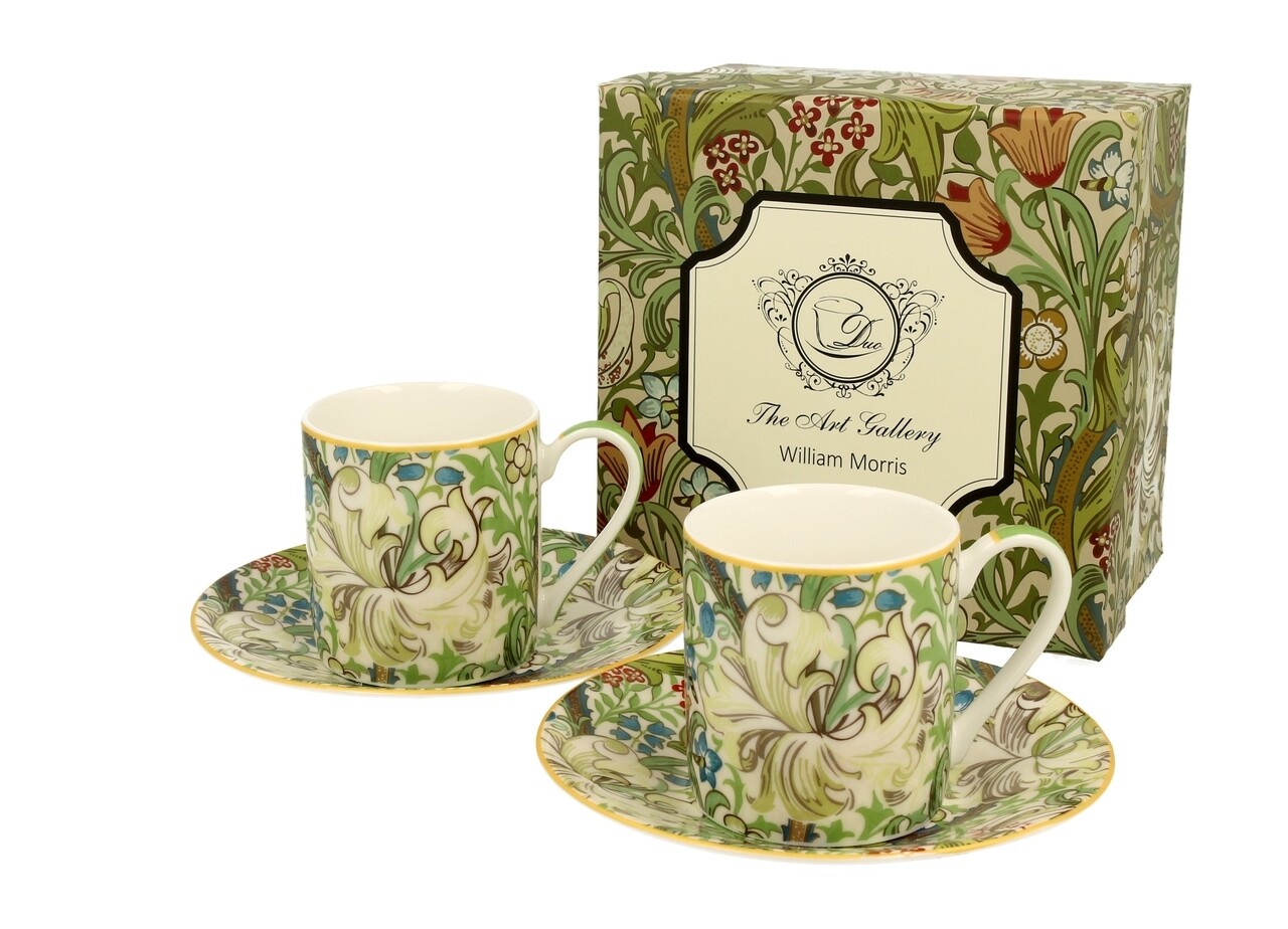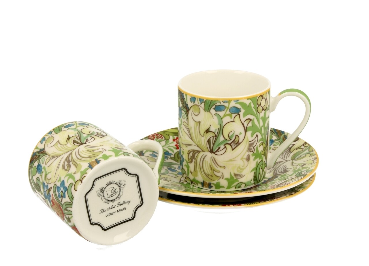 Set 2 cesti espresso cu farfurie Golden Lily, Duo, 90 ml, portelan, multicolor