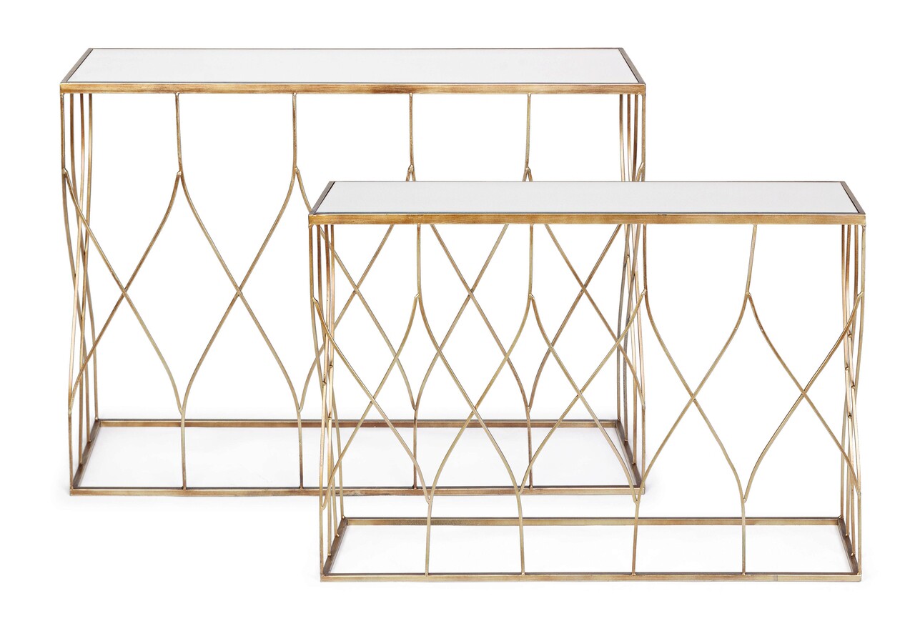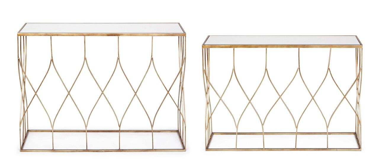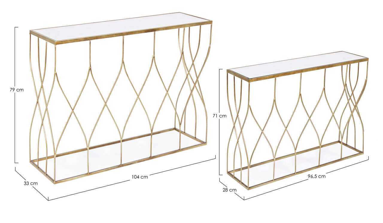 Set 2 console Elenor, Bizzotto, 104 x 33 x 79 cm, otel/sticla, auriu