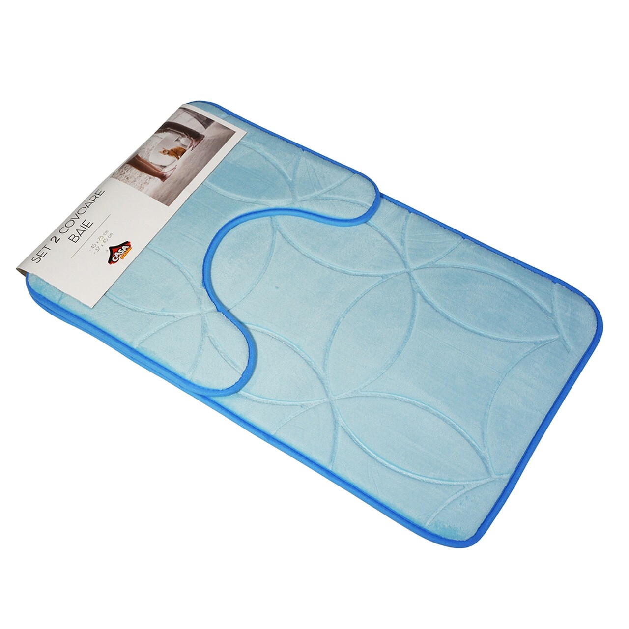 Set 2 covorase de baie, Casa Plastor, Circles, 45 x 73 cm, 37 x 45 cm, poliester/poliuretan/PVC, bleu