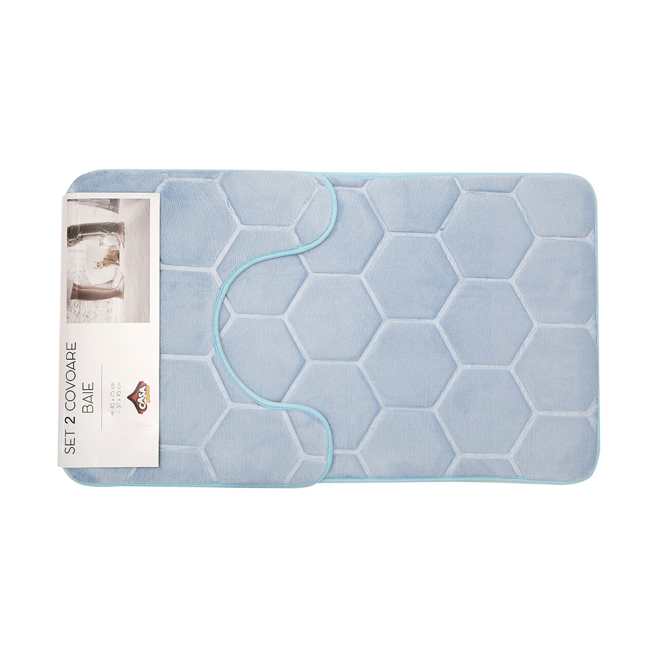 Set 2 covorase de baie, Casa Plastor, Honey, 45 x 73 cm, 37 x 45 cm, poliester/poliuretan/PVC, bleu
