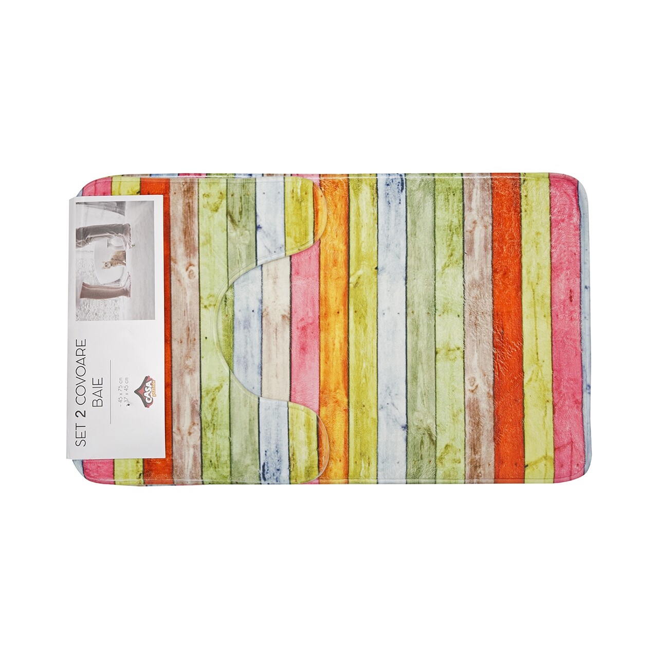 Set 2 covorase de baie, Casa Plastor, Stripes, 45 x 73 cm, 37 x 45 cm, poliester/poliuretan/PVC, multicolor