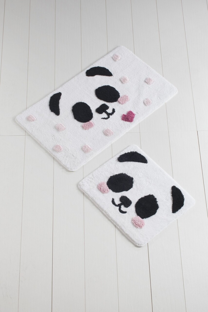 Set 2 covorase de baie, Chilai, Panda, alb/negru/roz