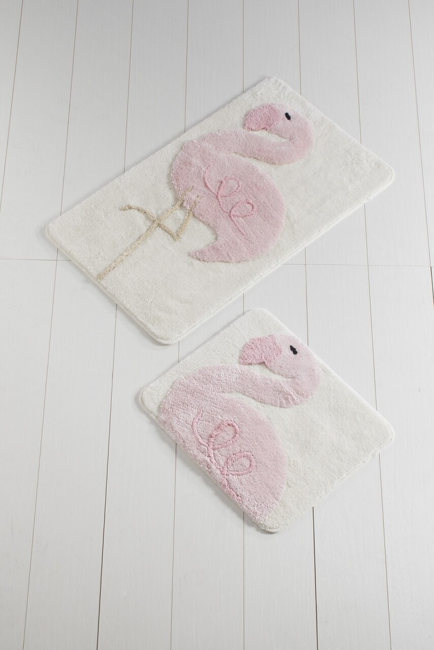 Set 2 covorase de baie, Chilai, Pink Flamingo, crem/roz