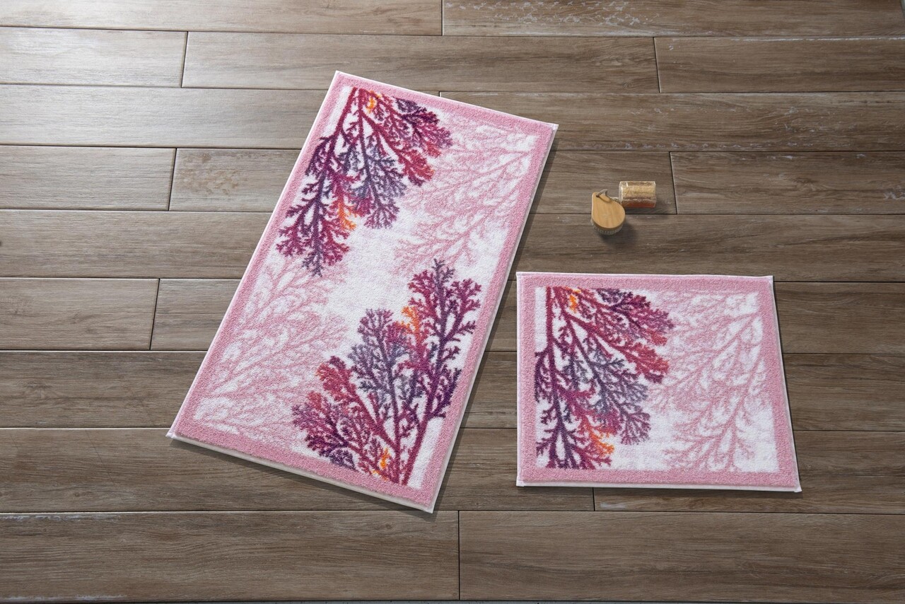 Set 2 covorase de baie Coral, Confetti, 50x57 cm/57x100 cm, roz