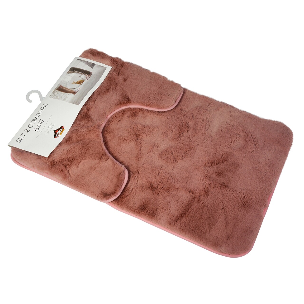 Set 2 covorase pufoase de baie, Casa Plastor, 45 x 73 cm, 37 x 45 cm, poliester/TPR, roz
