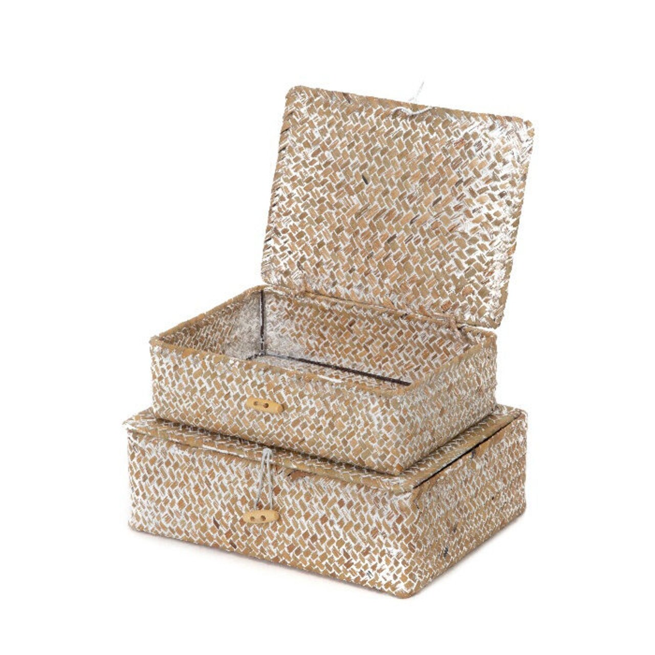 Set 2 cutii de depozitare Macao, Compactor, papura, bej