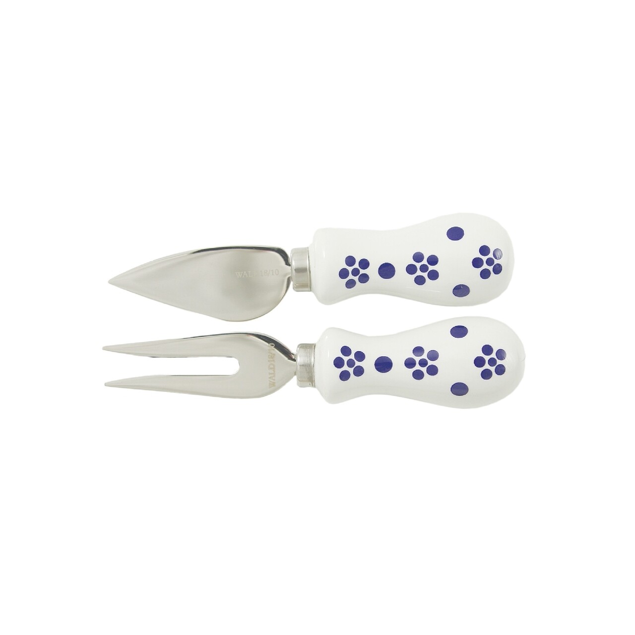 Set 2 cutite pentru branzeturi, Wald, 13.5 x 3 x 3 cm, inox/portelan, alb/albastru