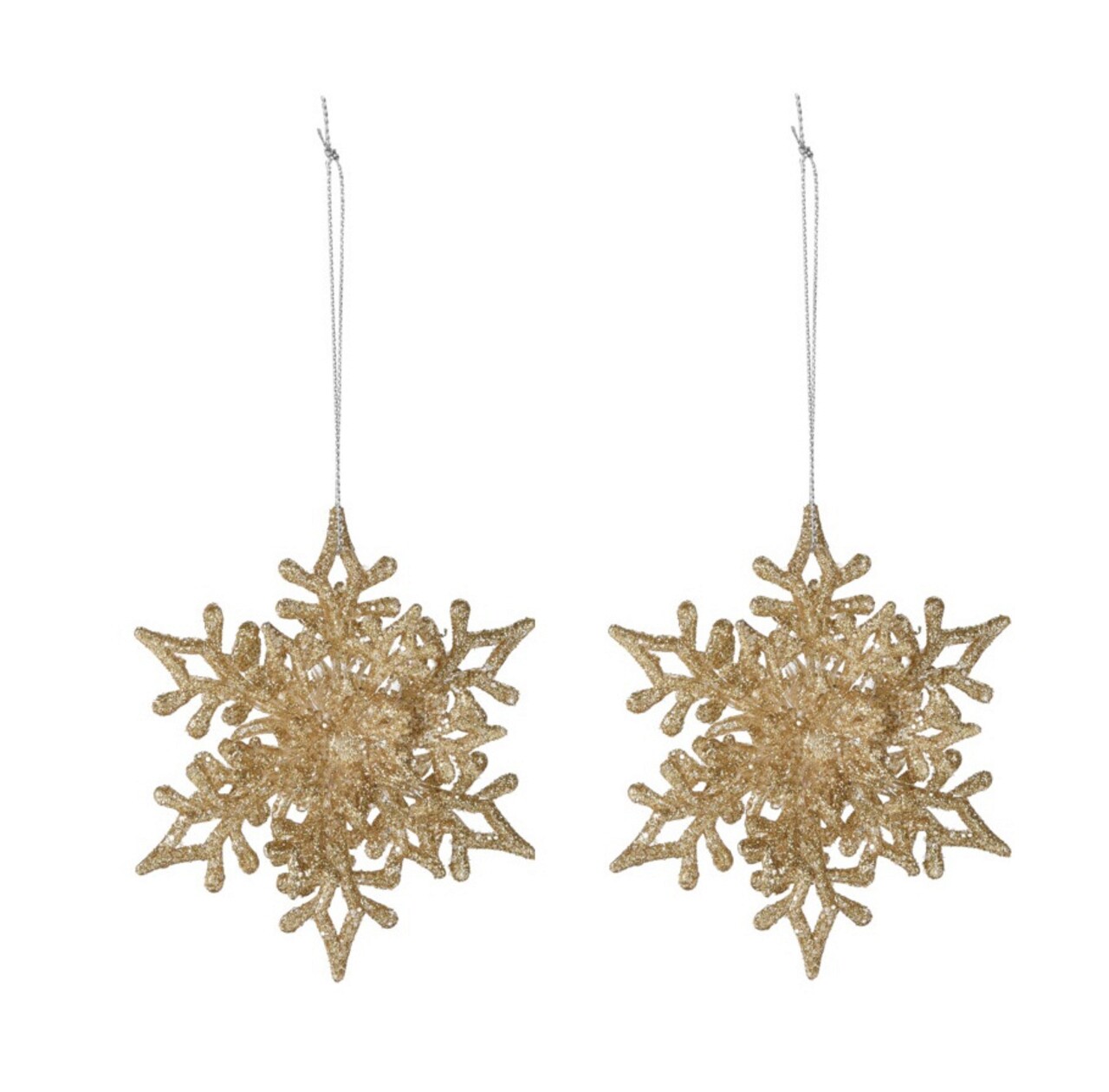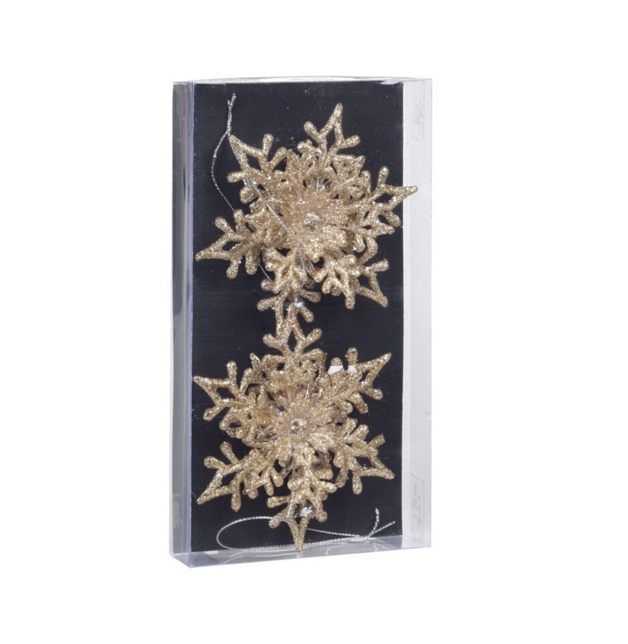 Set 2 decoratiuni brad Snowflake, 11.5x2.5x11.5 cm, polipropilena, auriu