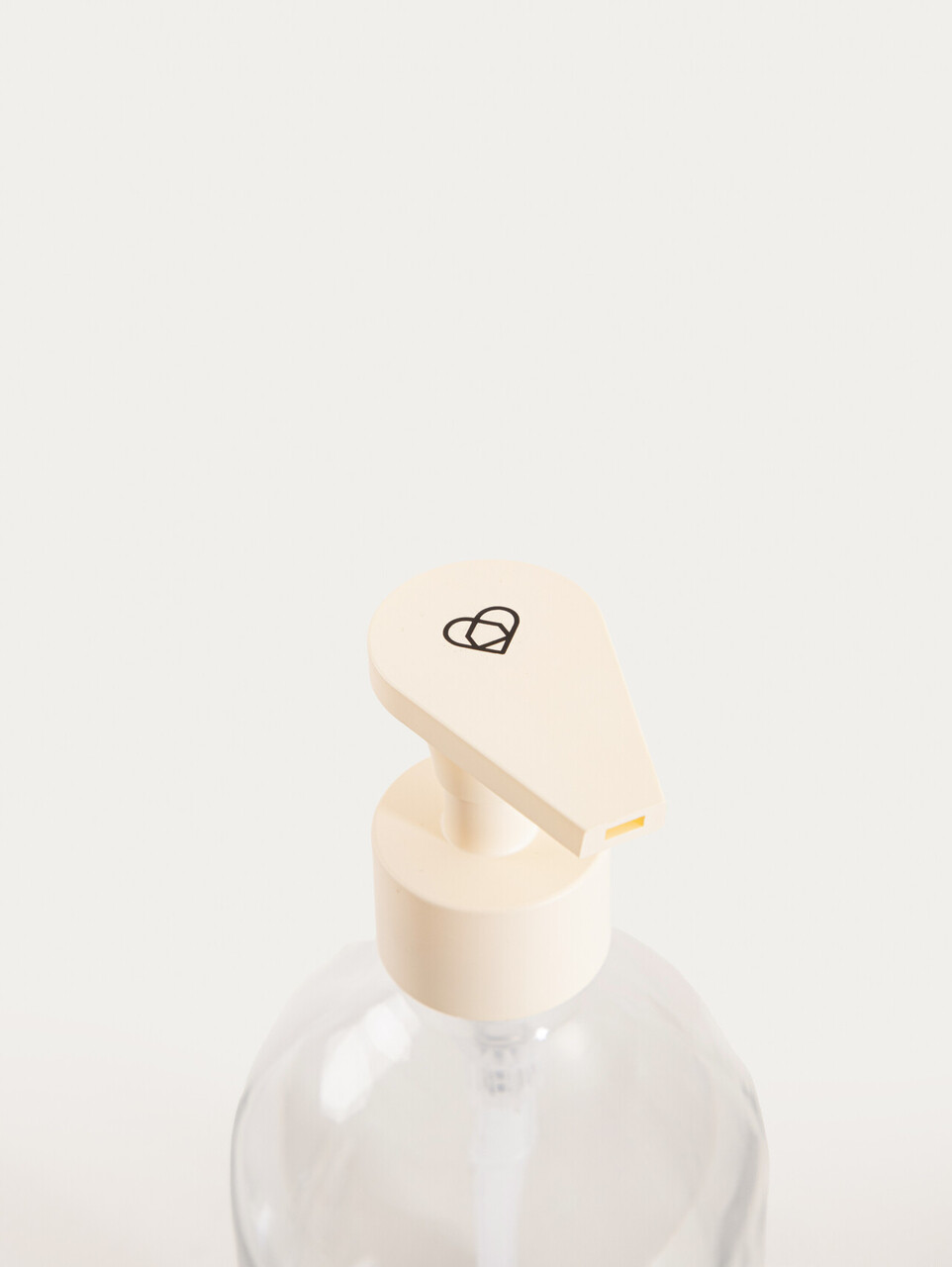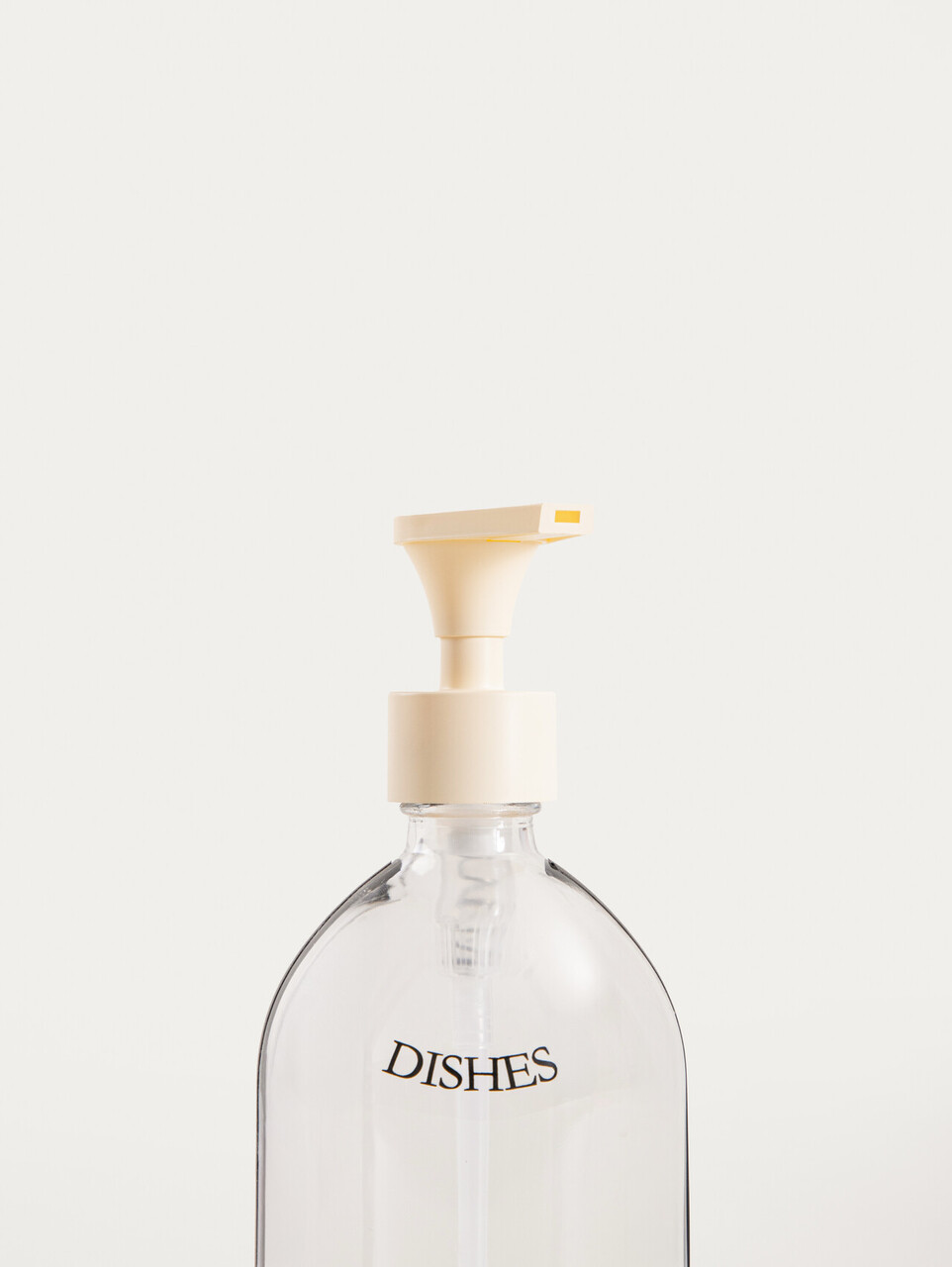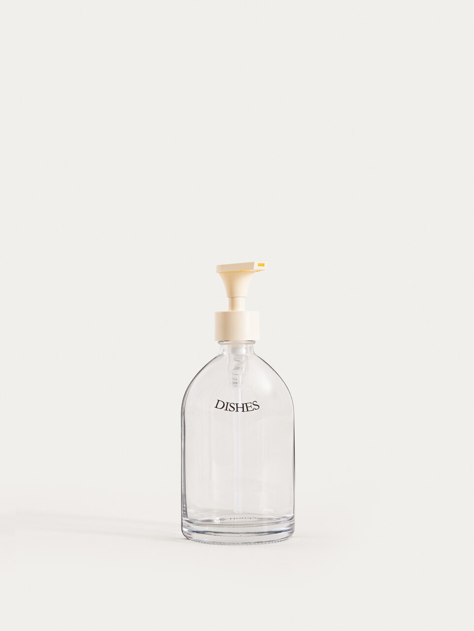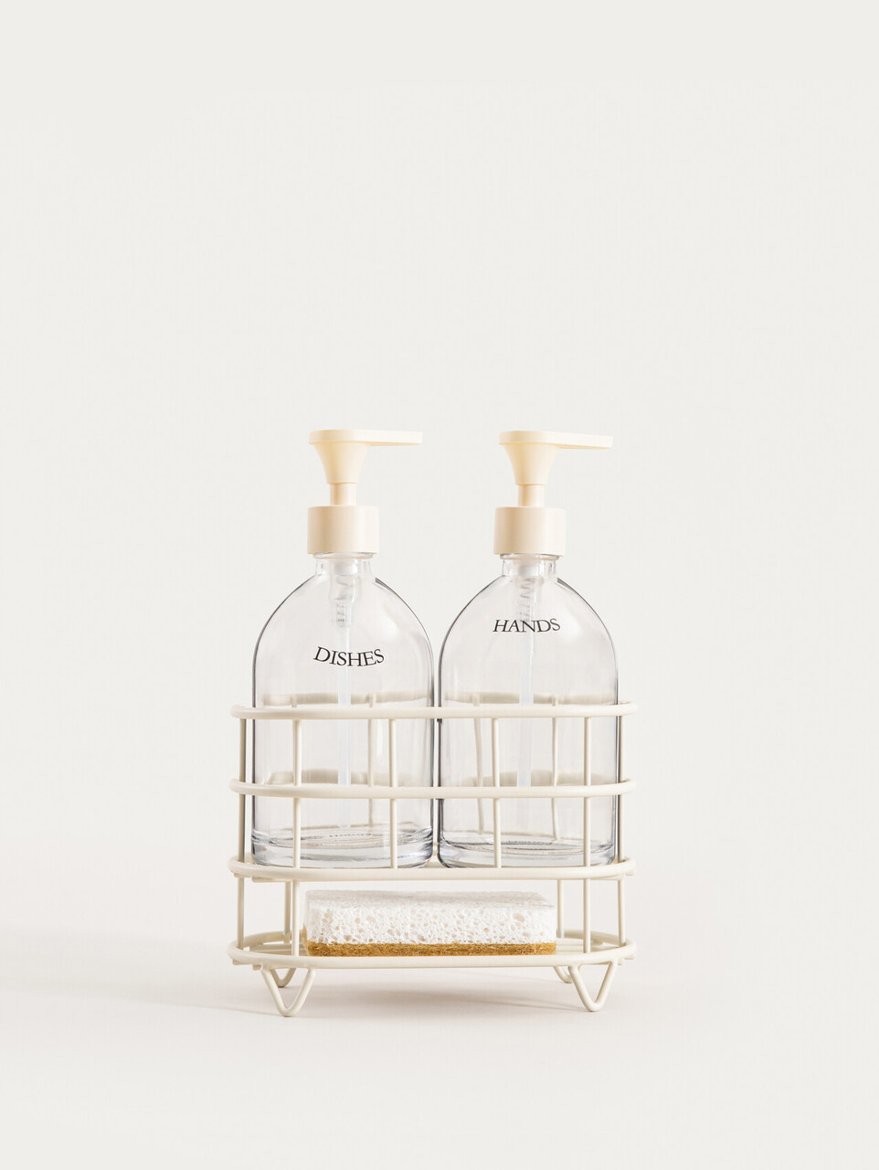 Set 2 dozatoare sapun/detergent lichid si suport Nerja, Homla, 22x10.5x19.5 cm, sticla/plastic/metal, crem/transparent