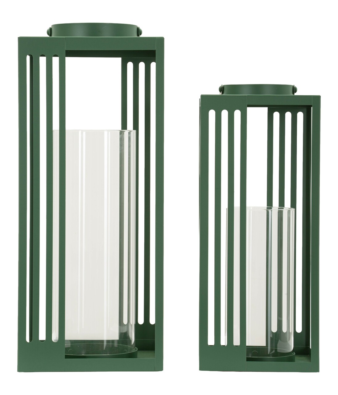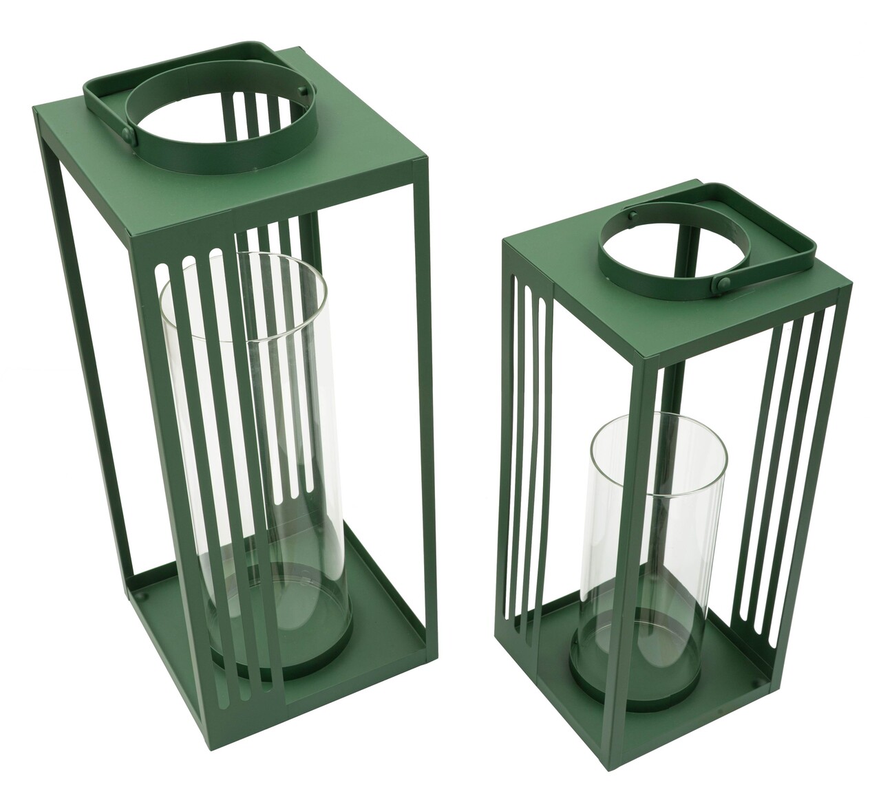Set 2 felinare, Mauro Ferretti, Linee, 18.3x18.3x43.5 cm, metal/sticla temperata, verde