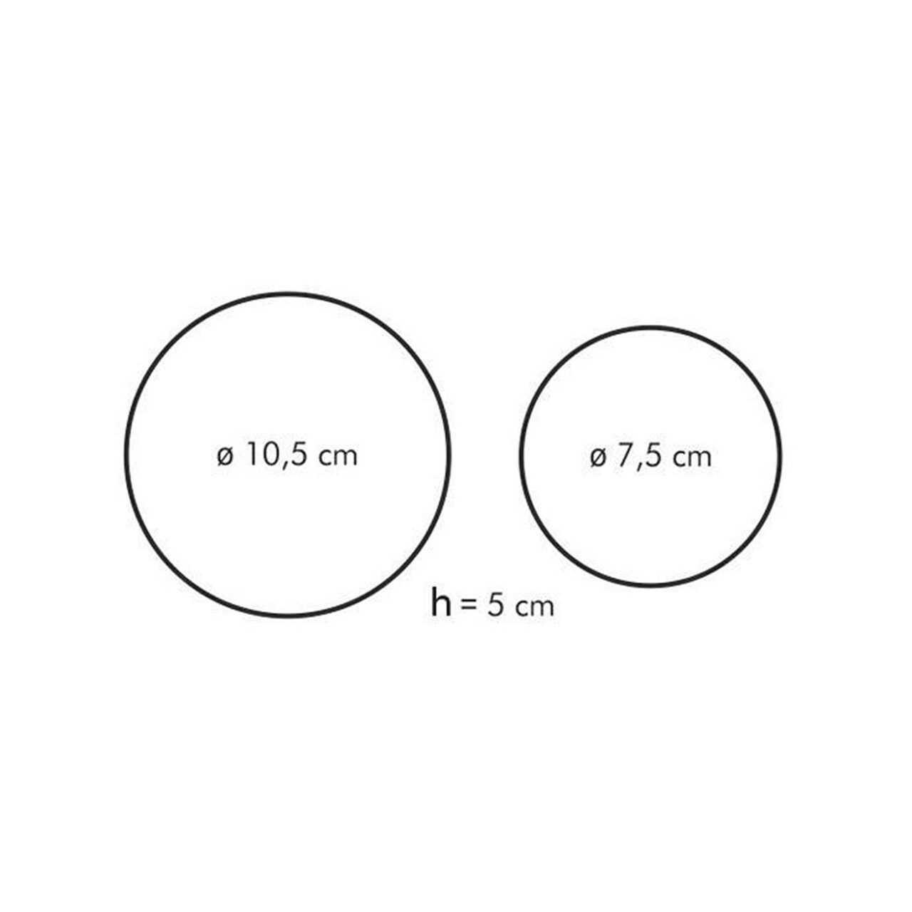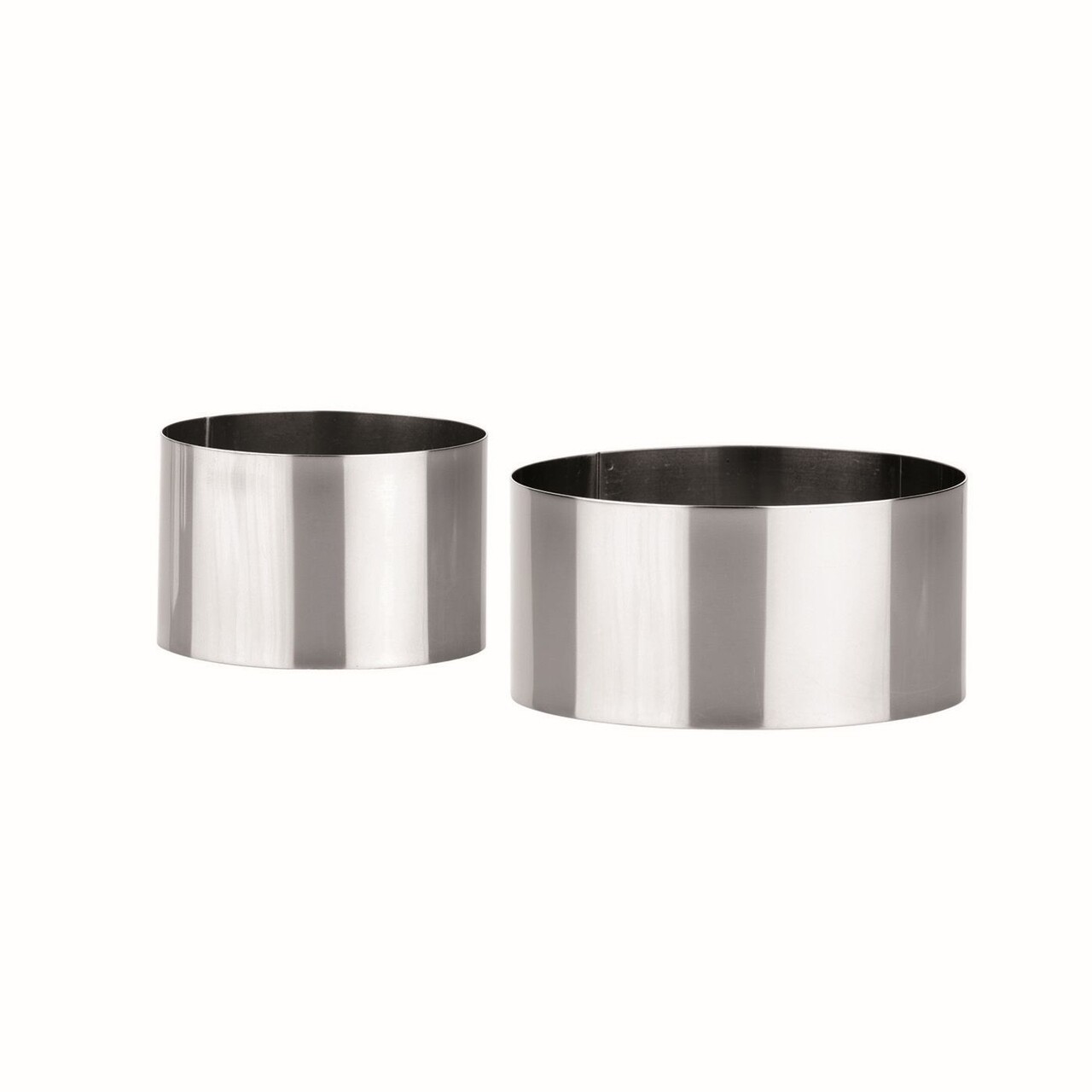 Setul de doua forme rotunde destinate pentru aranjarea si modelarea intr-un mod elegant a preparatelor, este ideal pentru piureuri de orez, cartofi sau legume, modelarea deserturilor, a mancarurilor coapte, potrivit pentru prepararea in tigaie a oualor posate si, de asemenea, este potrivit pentru taierea aluaturilor. Aceste inele sunt fabricate din otel inoxidabil si pot fi folosite in orice moment al prepararii mancarii: in tigaie, in cuptor sau pe farfurie.