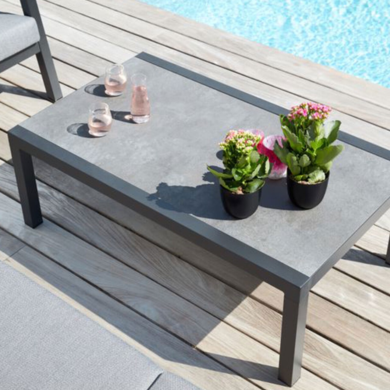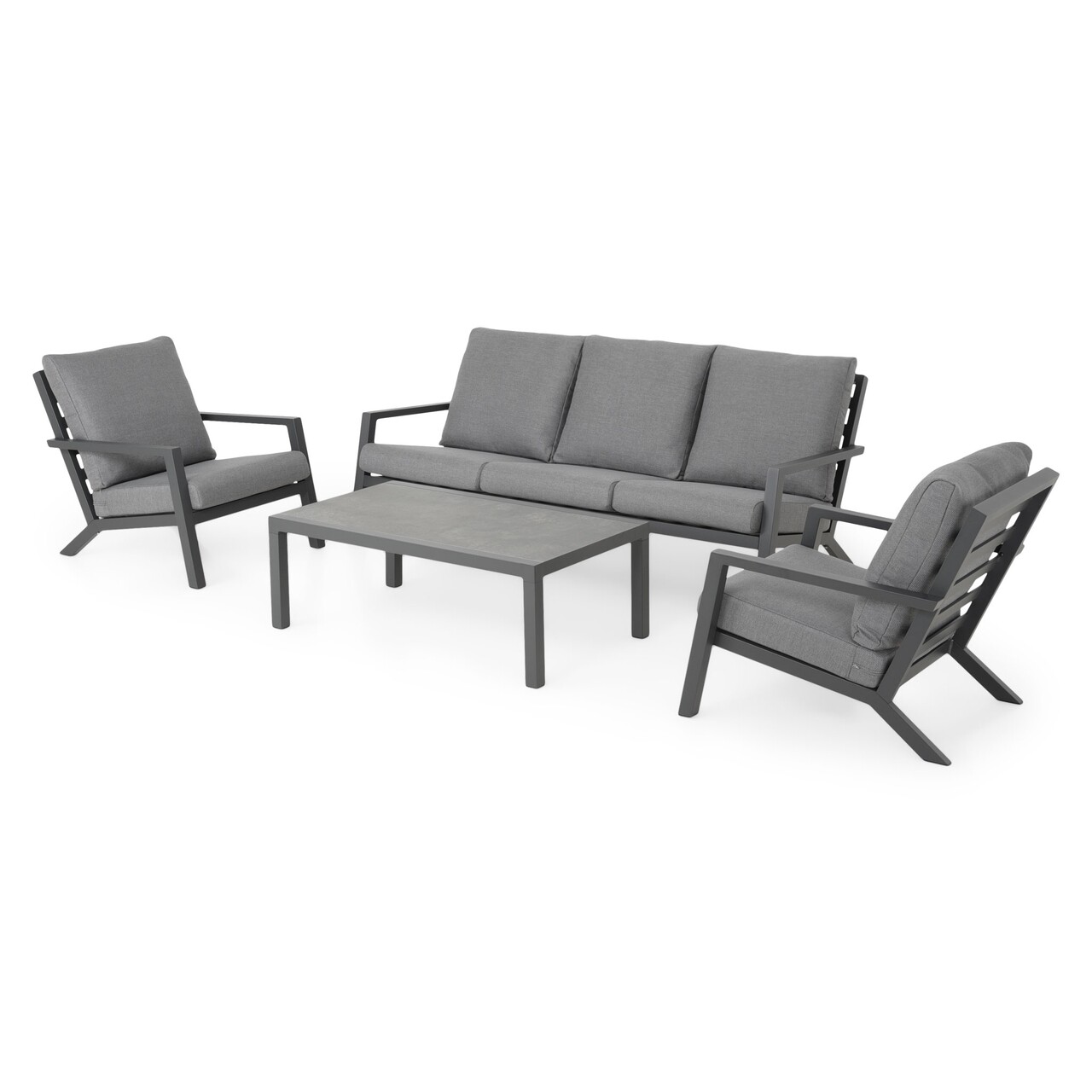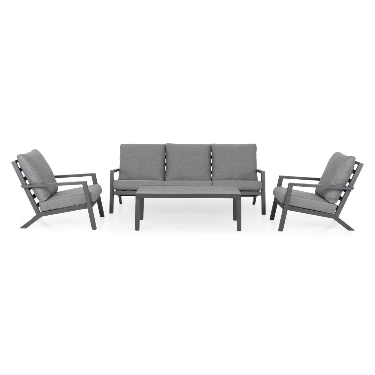 Set 2 fotolii, canapea si masuta, Lazy, L.75 l.98 H.79, aluminiu, antracit/gri