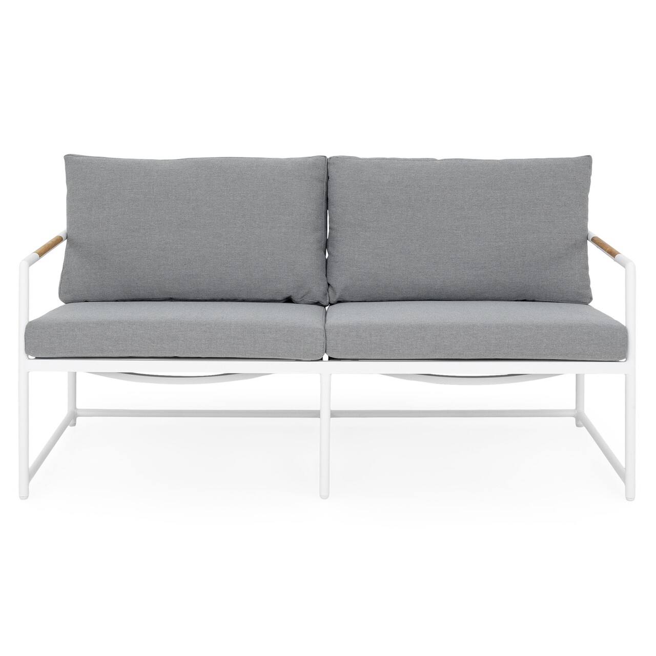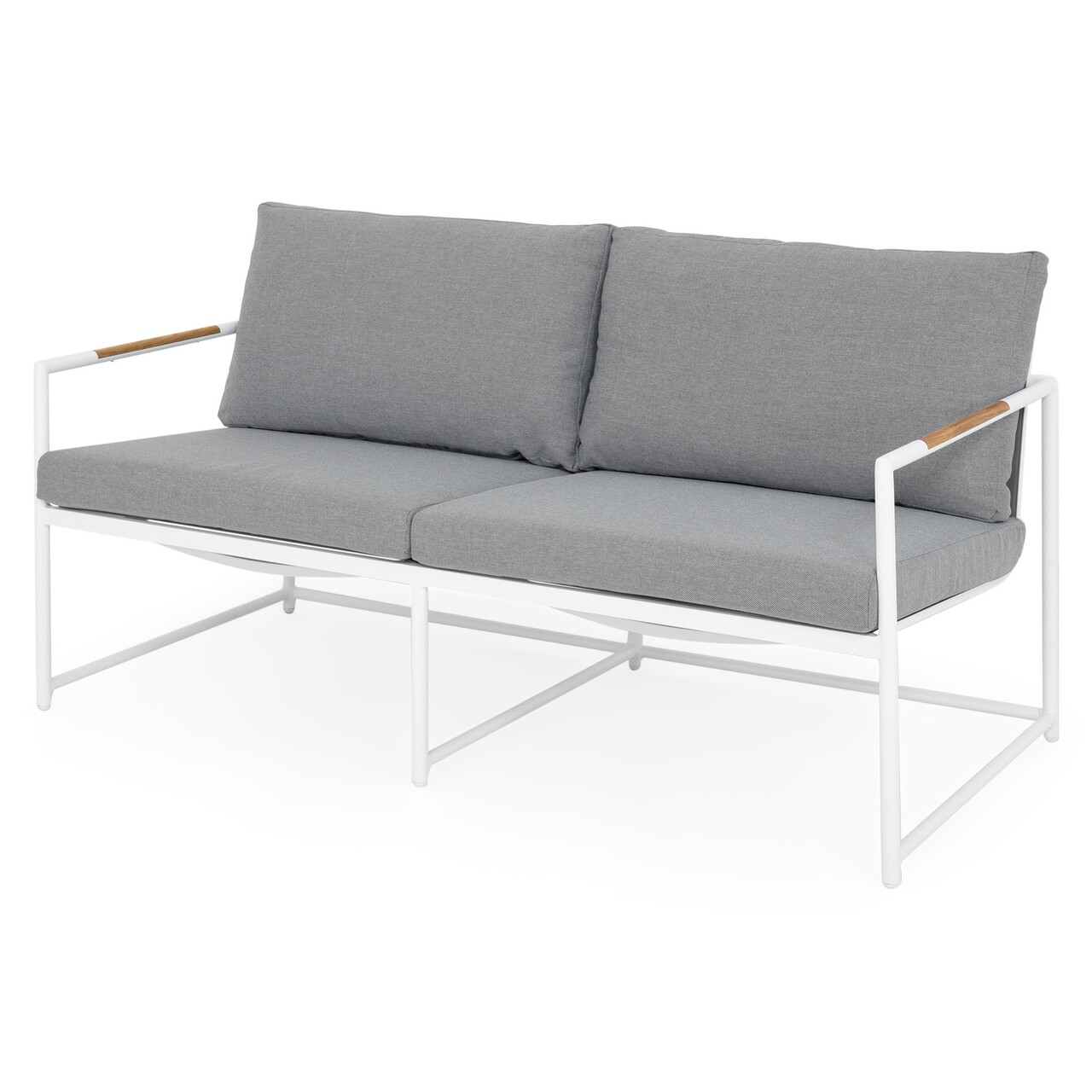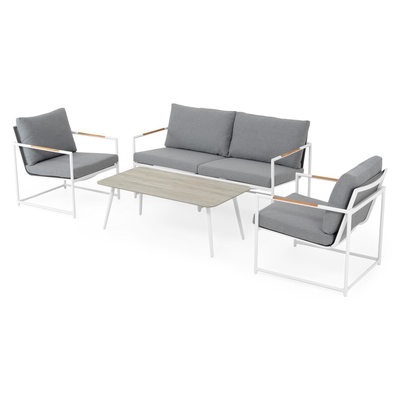 Set 2 fotolii, canapea si masuta, Pori, L.67 l.78 H.76 aluminiu, alb/gri