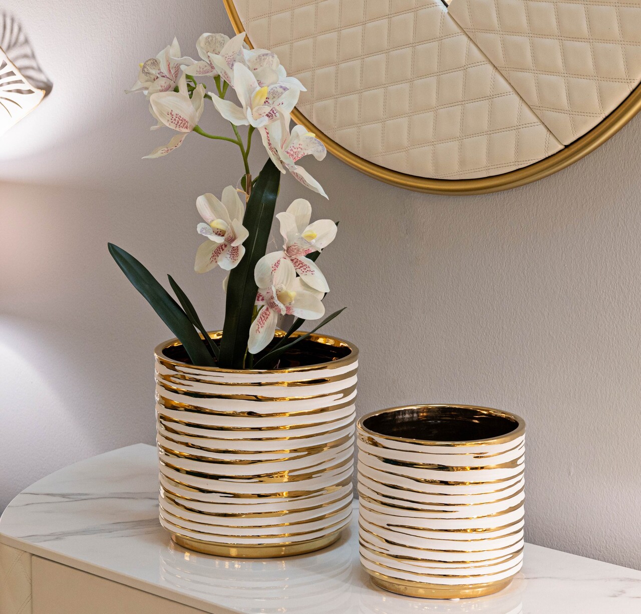 Set 2 ghivece Blom, Mauro Ferretti, 23x22 cm/18x17.5 cm, ceramica, alb/auriu