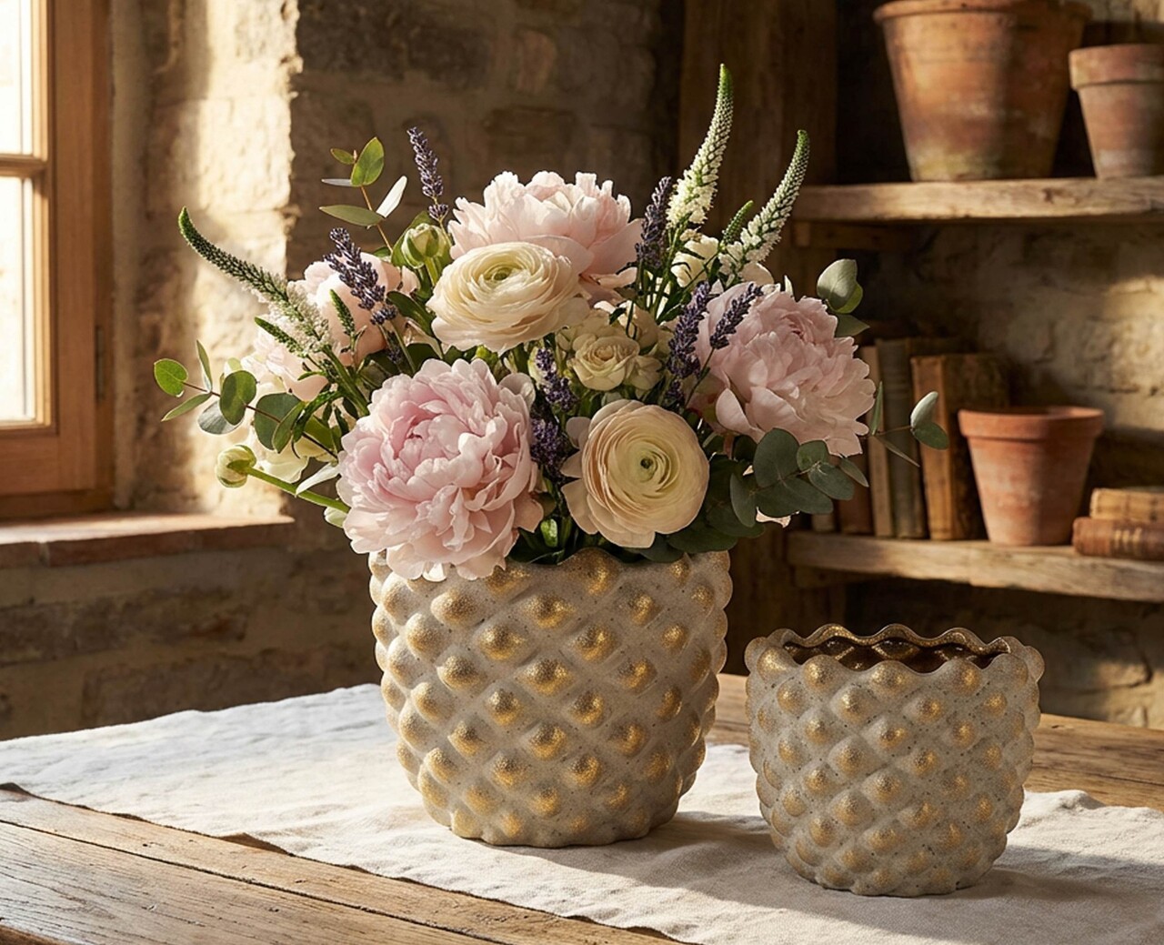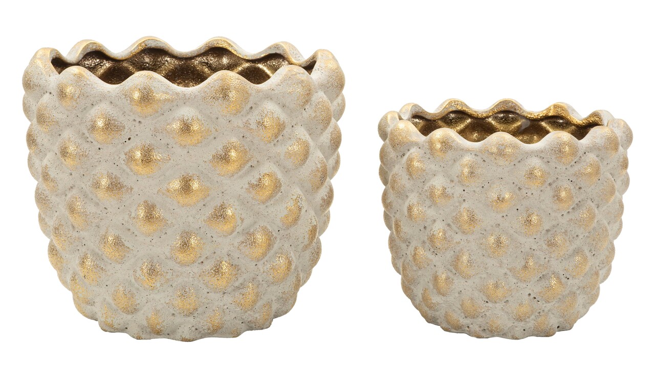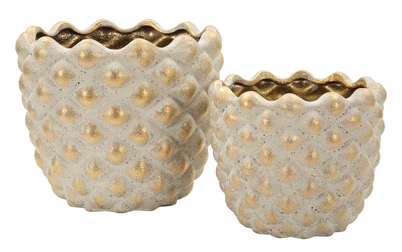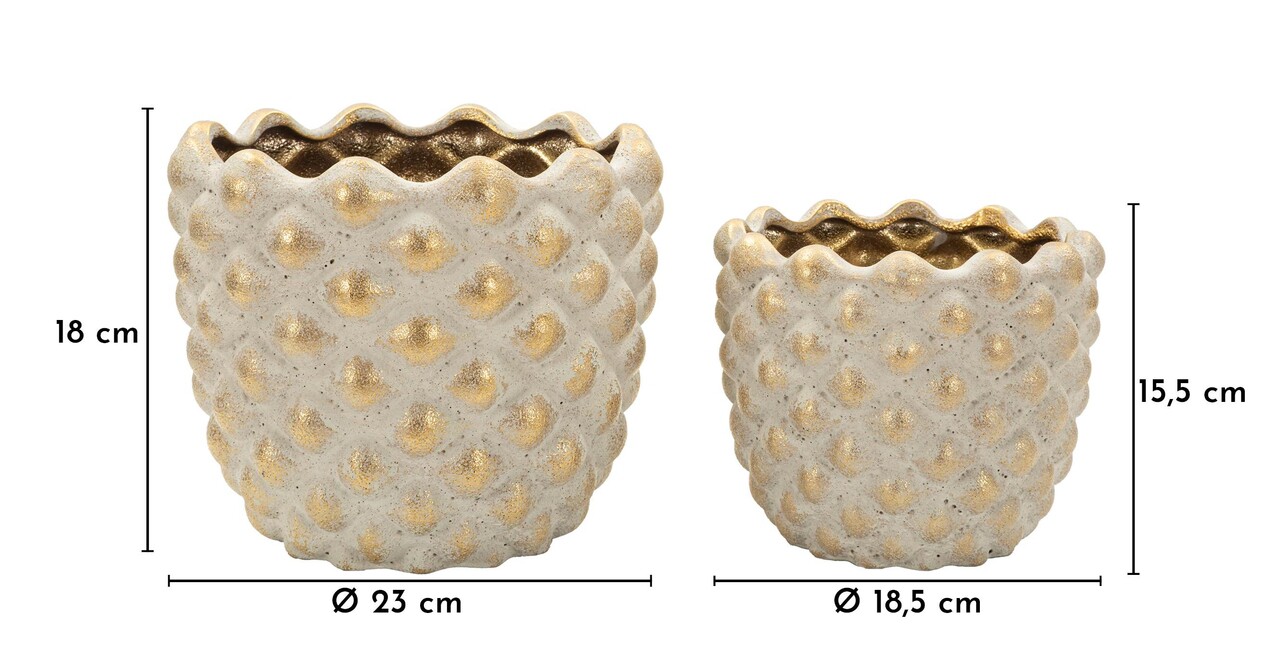 Set 2 ghivece, Mauro Ferretti, Pepipas, 23x18 cm, ceramica, gri/auriu