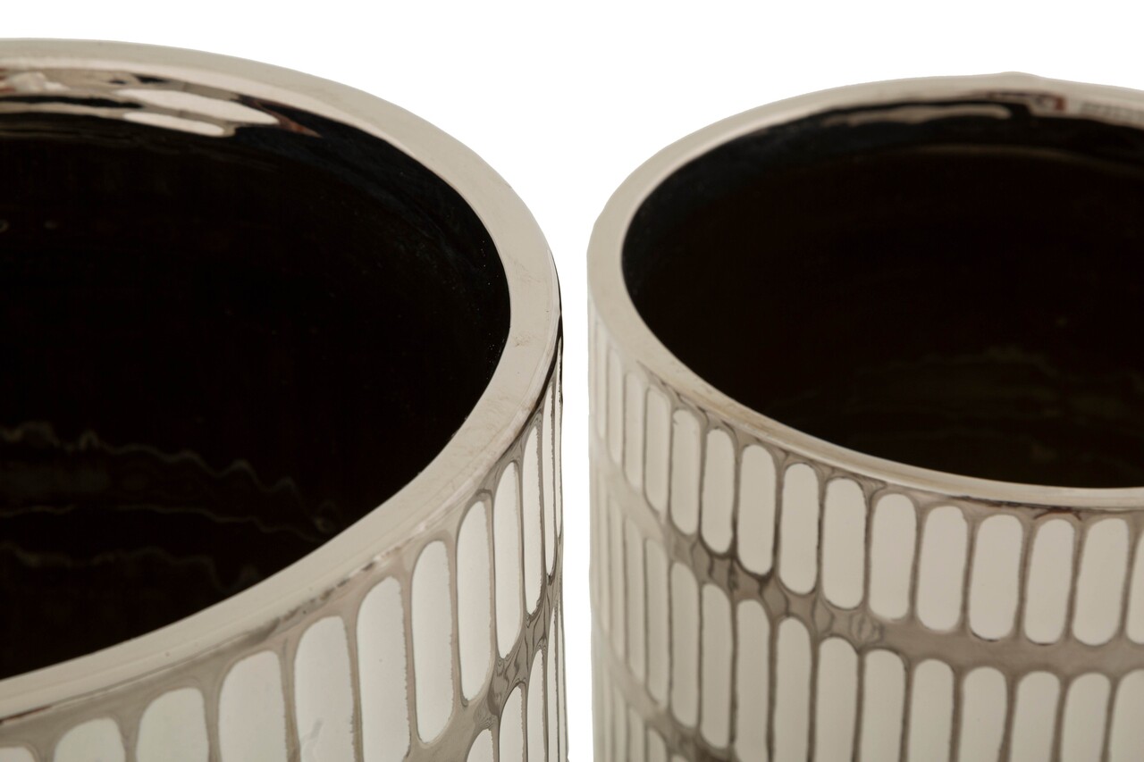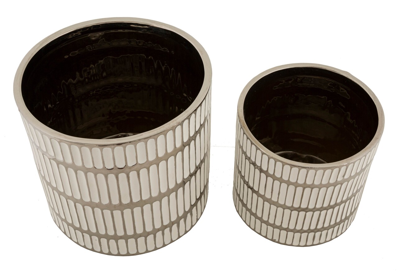 Set 2 ghivece Ray, Mauro Ferretti, 22.5x24 cm/18x19 cm, ceramica, alb/argintiu