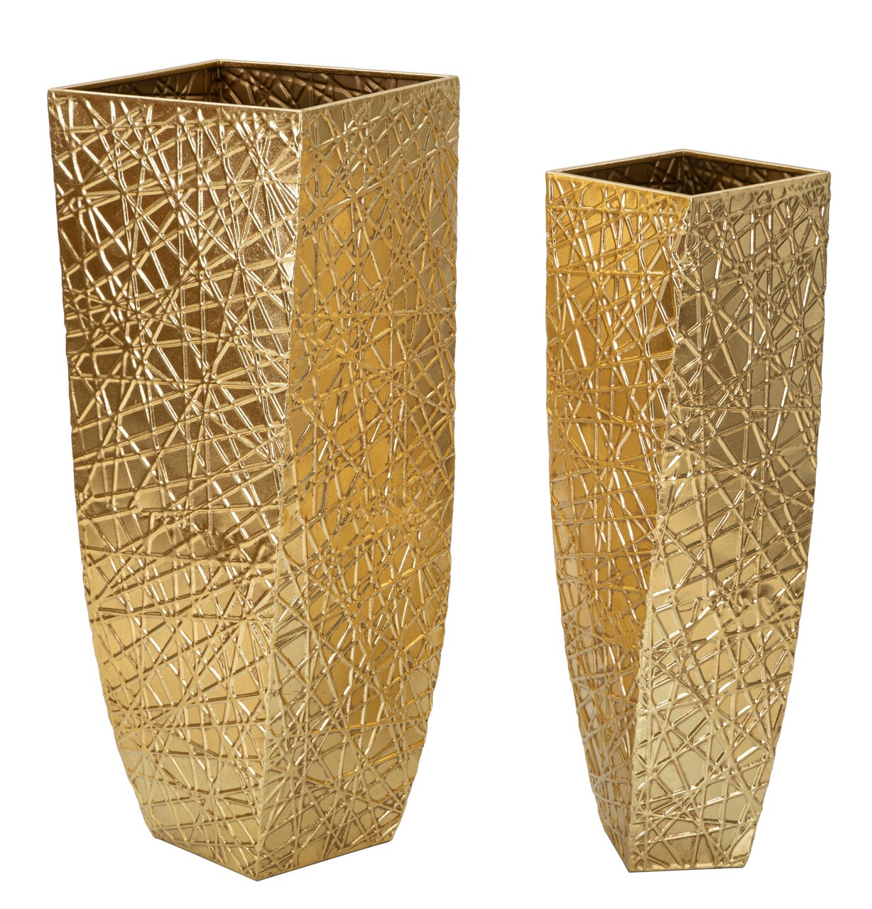 Set 2 ghivece / vase decorative Squer, Mauro Ferretti, 34x34x90 cm, fier, auriu