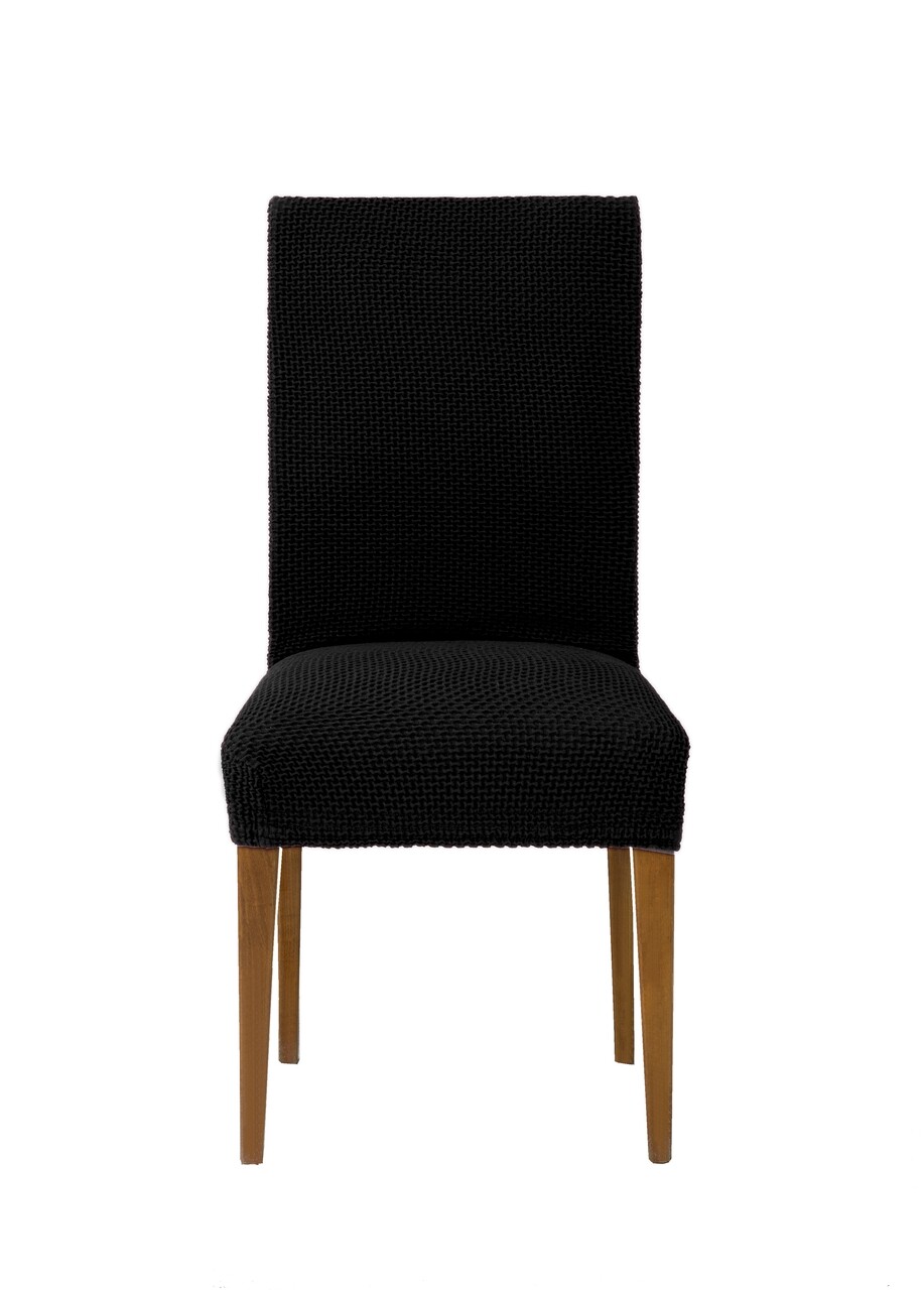 Set 2 huse scaun elastice bi-stretch, Cora, inaltime spatar pana la 55 cm, negru C/10