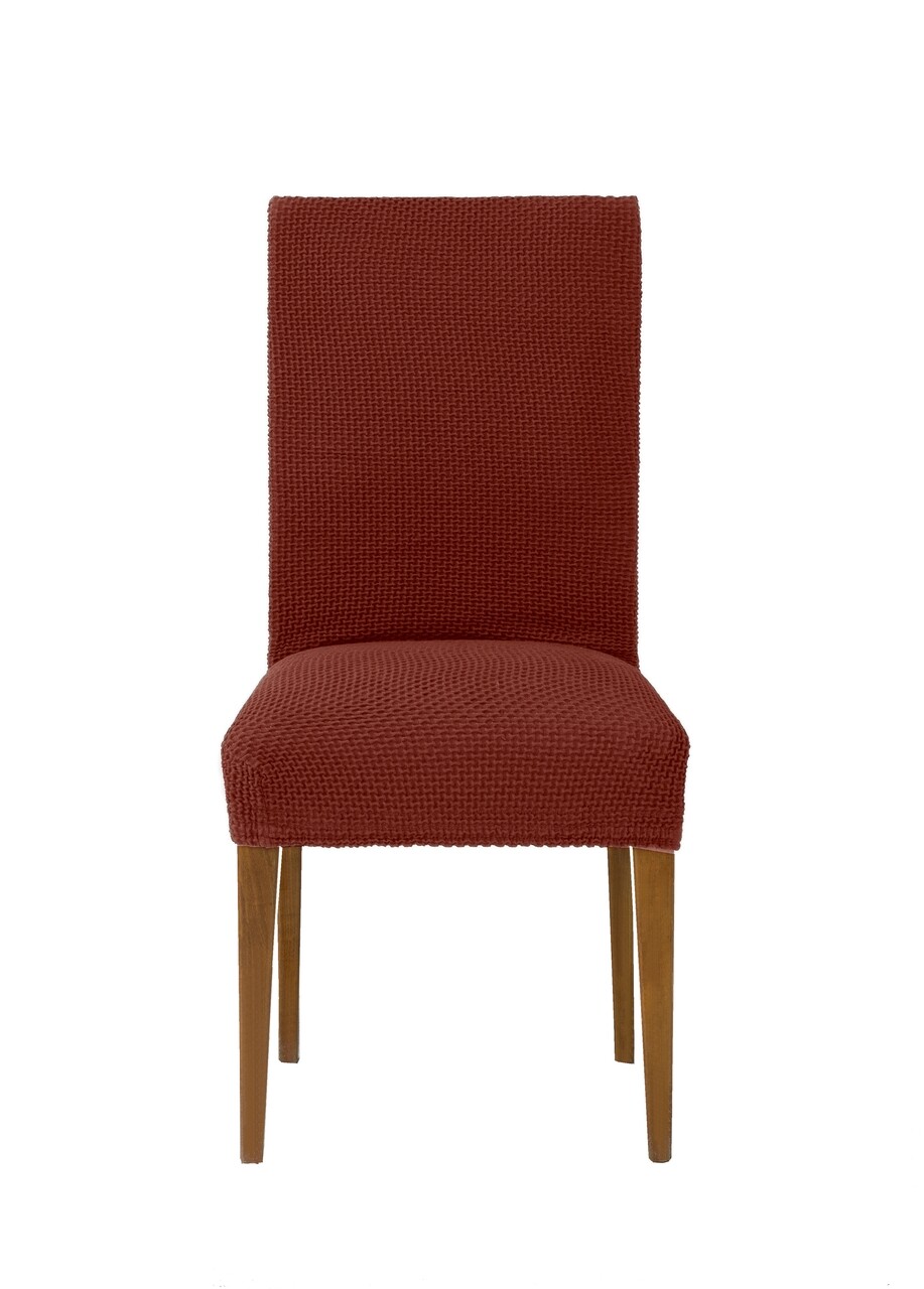 Set 2 huse scaun elastice bi-stretch, Cora, inaltime spatar pana la 55 cm, caramiziu C/9