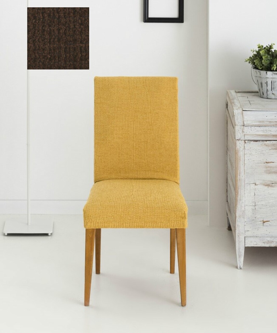 Set 2 huse scaun elastice bi-stretch, Dorian, inaltime spatar pana la 55 cm, maro C/7