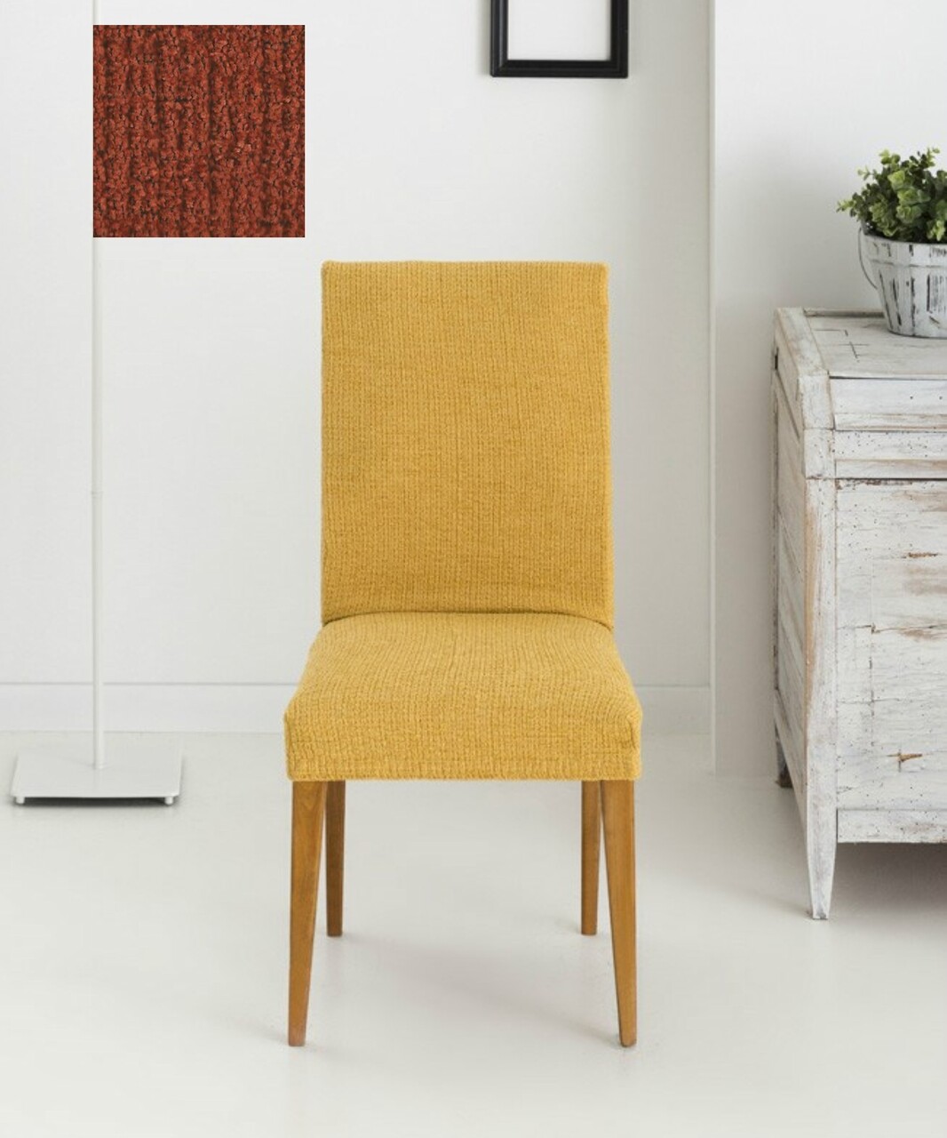 Set 2 huse scaun elastice bi-stretch, Dorian, inaltime spatar pana la 55 cm, caramiziu C/9
